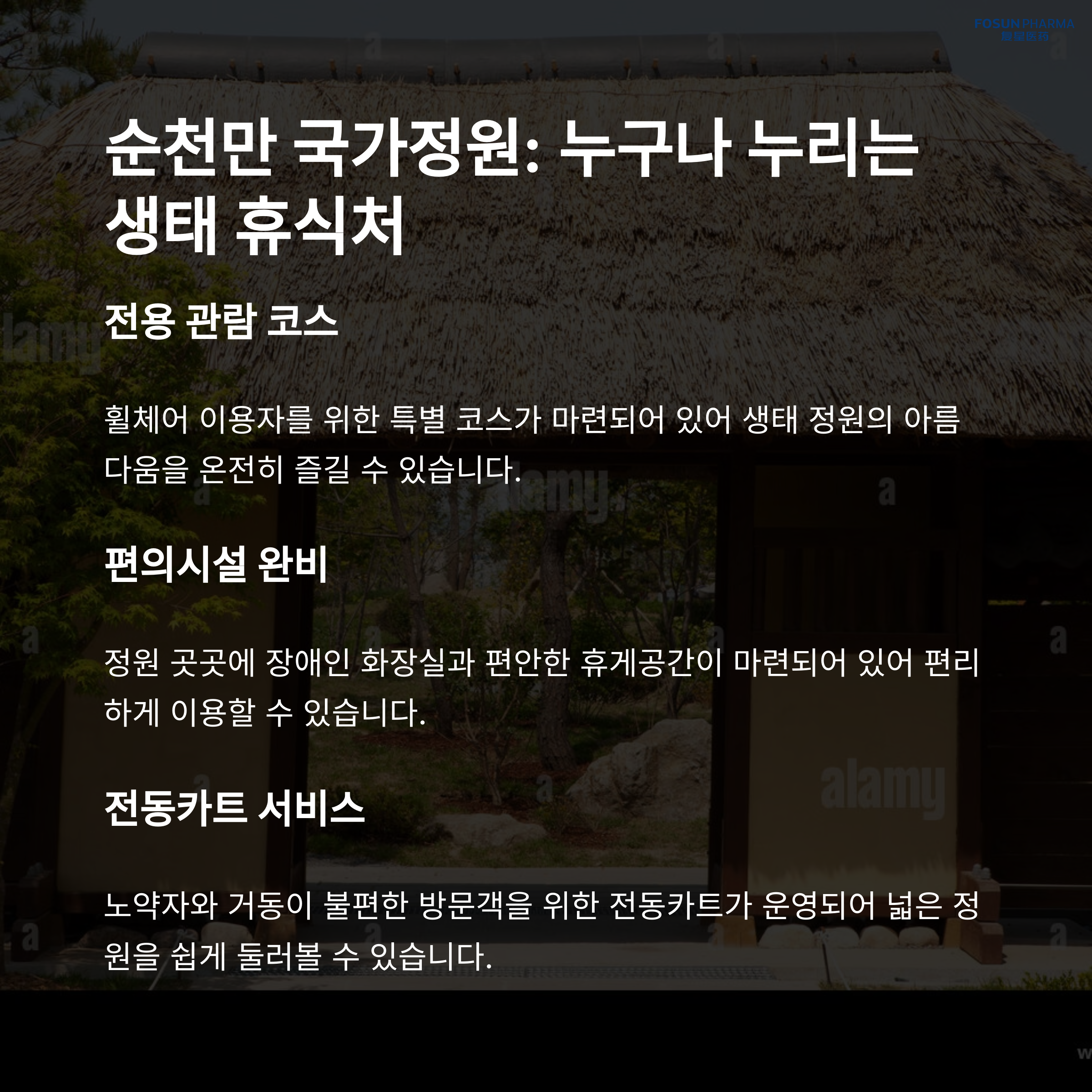 6월 / 911월 - 🌟 특징: 휠체어·유모차 무료 대여, 무장애 산책로, 전동차 운행
