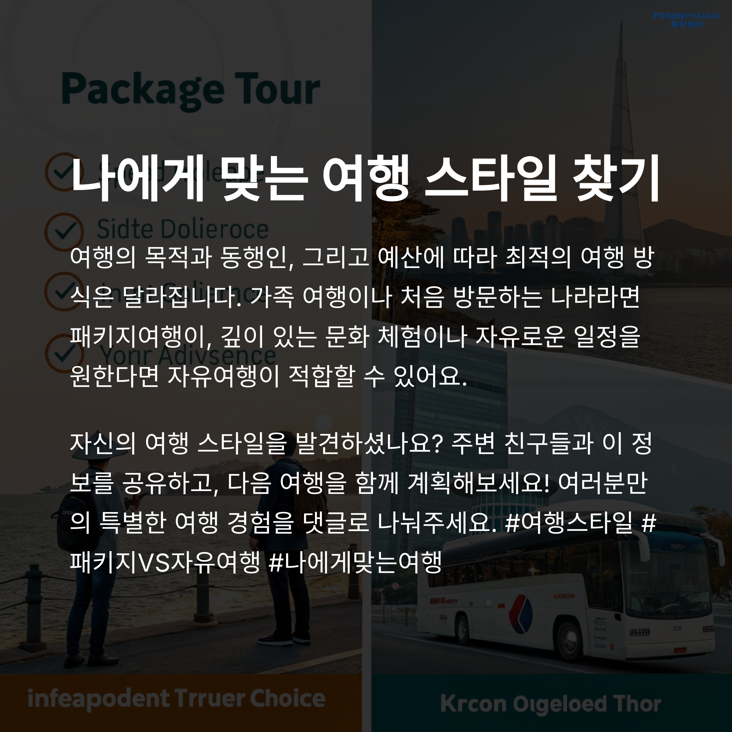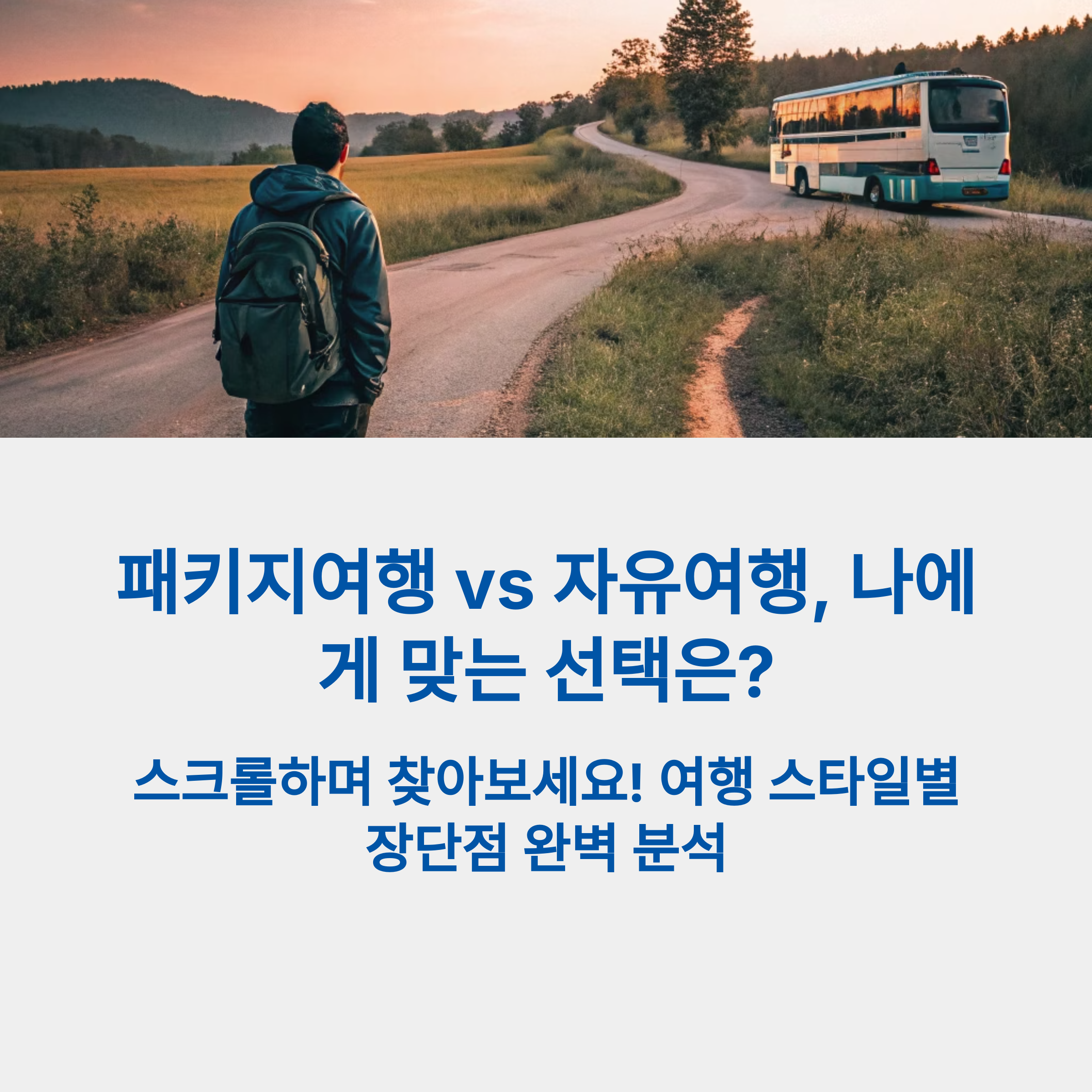 패키지여행과 자유여행은 여행 스타일을 고를 때 가장 중요한 두 가지 선택지입니다.