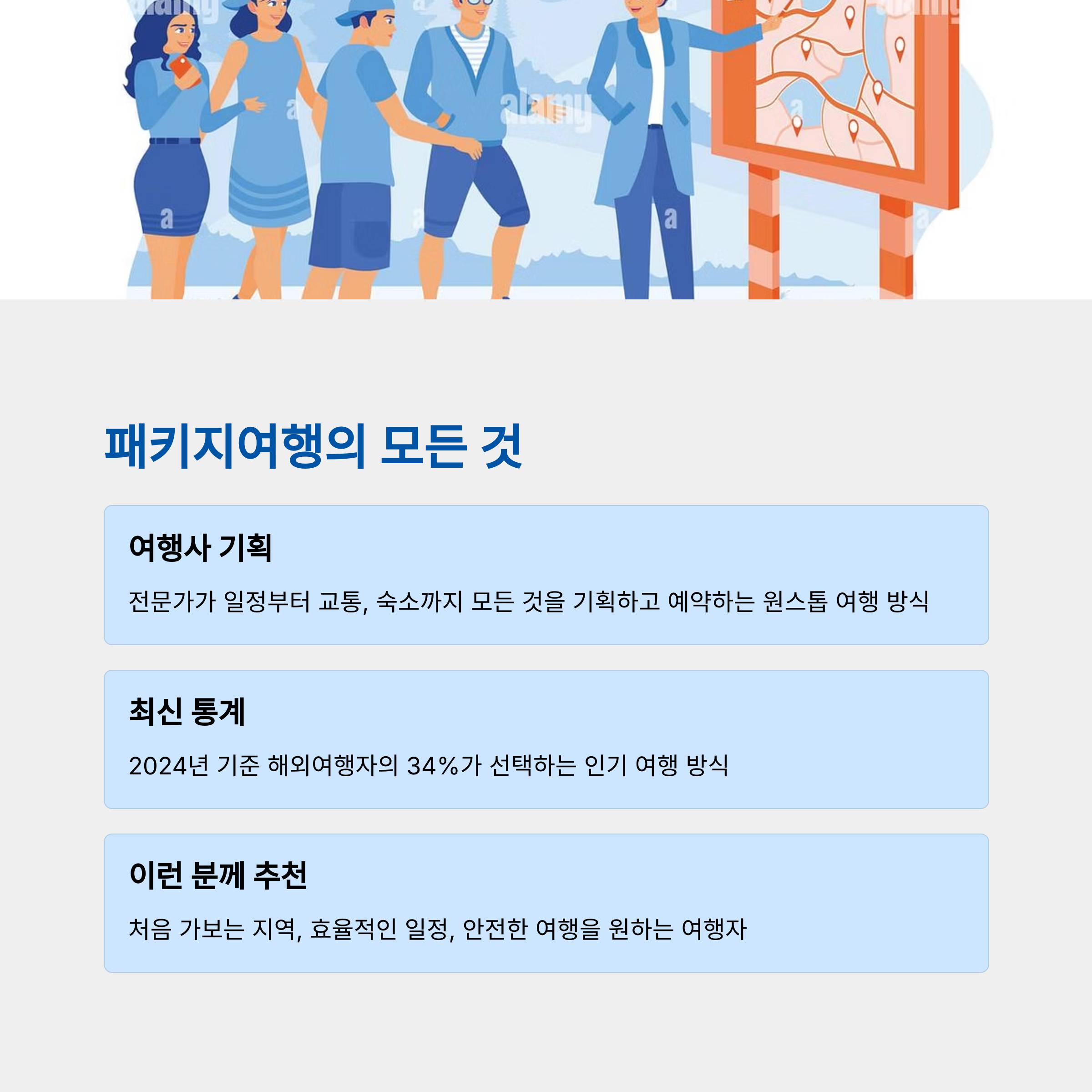 패키지여행은 사전 예약이 되어 있고, 여행의 모든 것이 계획된 상태에서 진행됩니다.