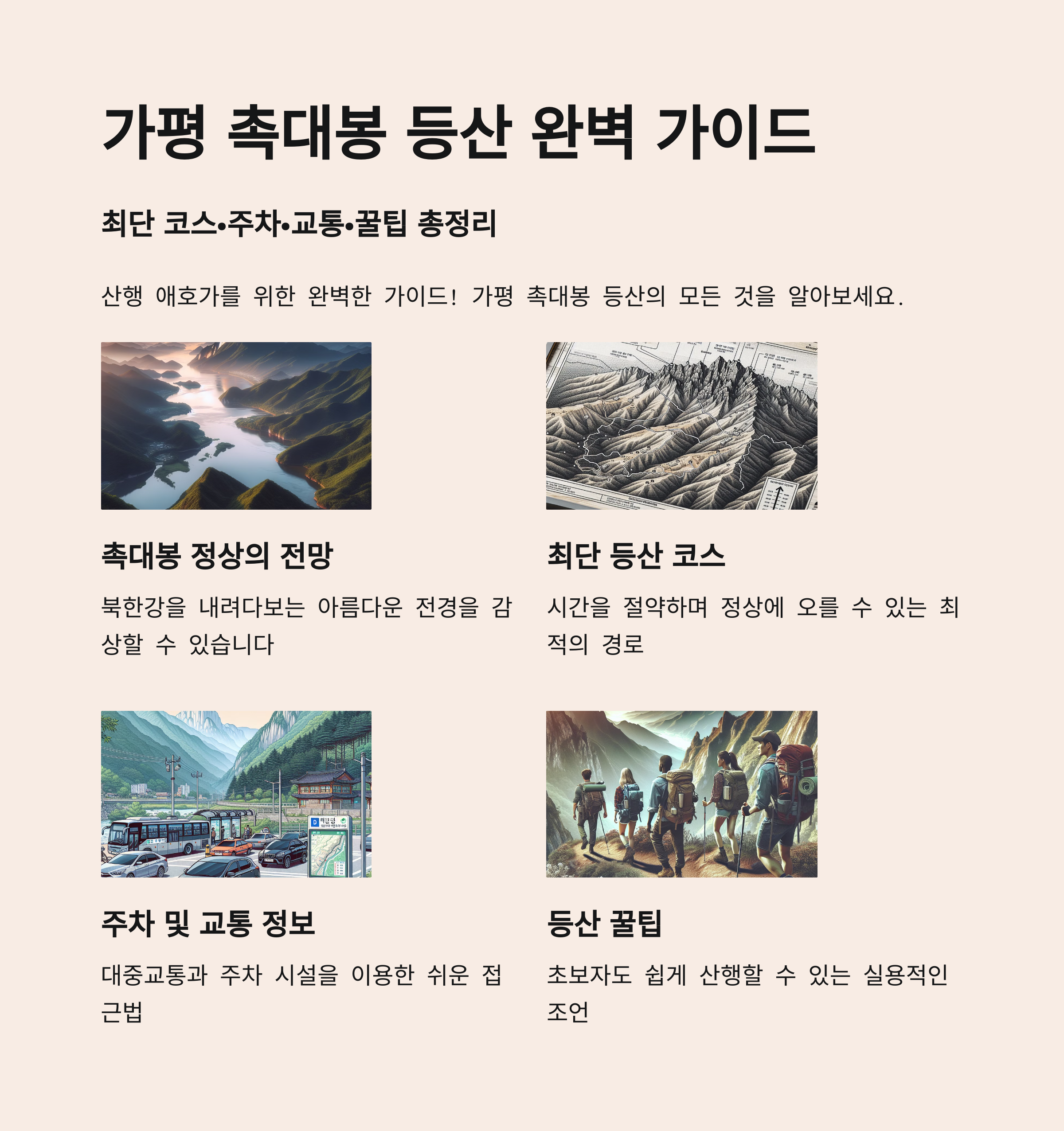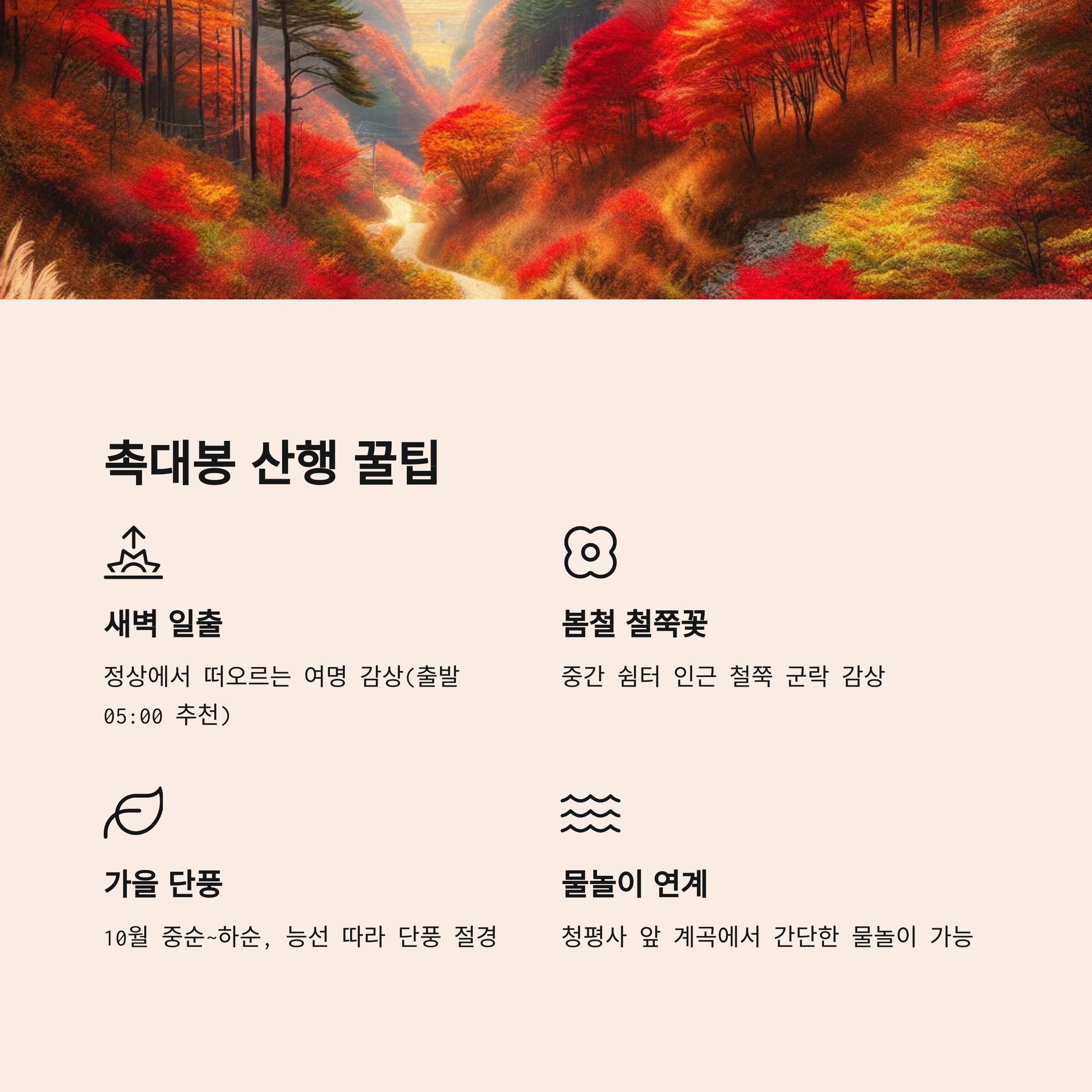 “가평 촉대봉” 등산 코스부터 주차장·교통·필수 장비·안전 수칙까지 한 번에 정리해 드리니, 가평 촉대봉 산행을 계획하신다면 이 글을 꼭 참고하세요.