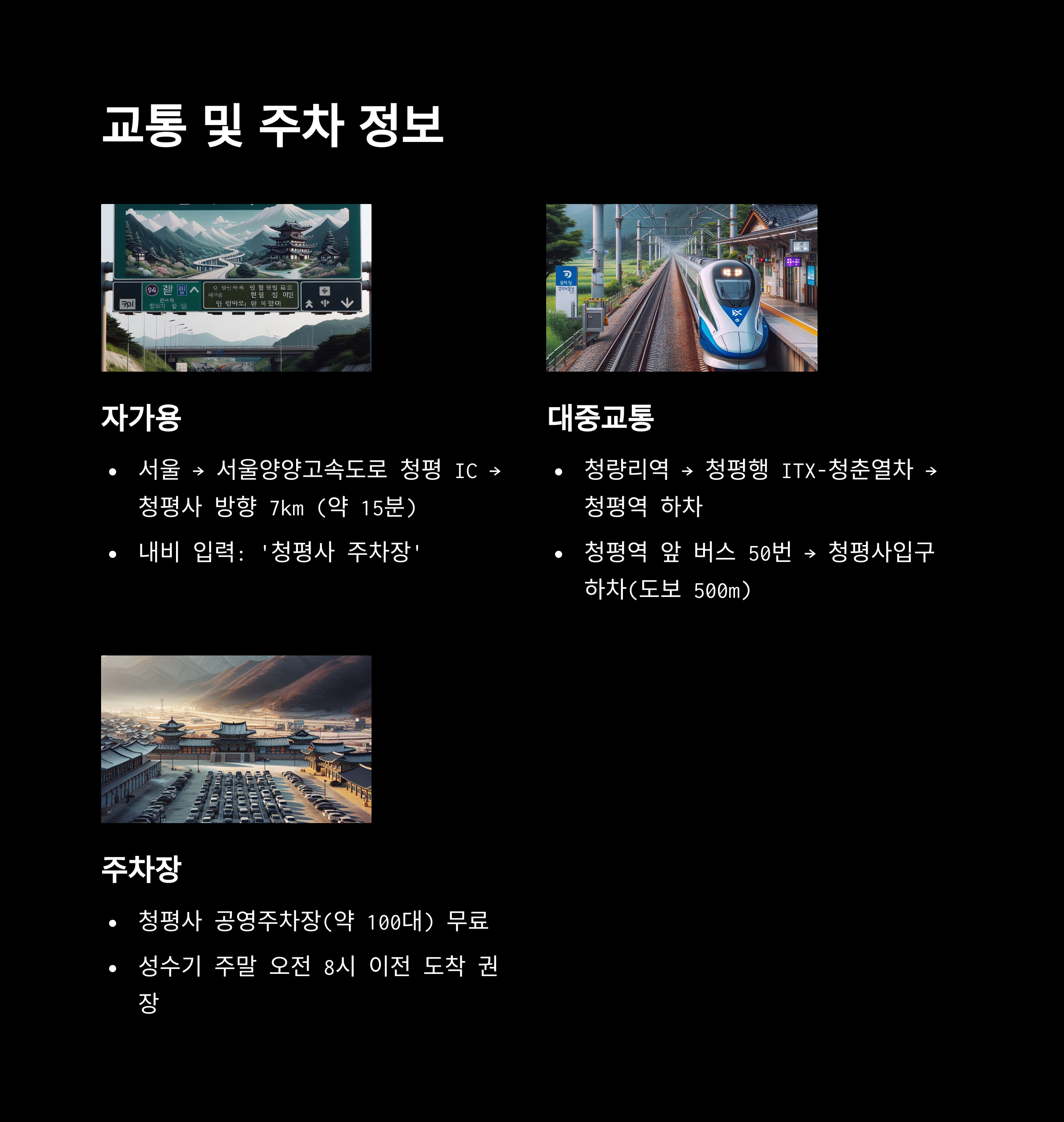 • 서울 → 서울양양고속도로 청평 IC → 청평사 방향 7km (약 15분)