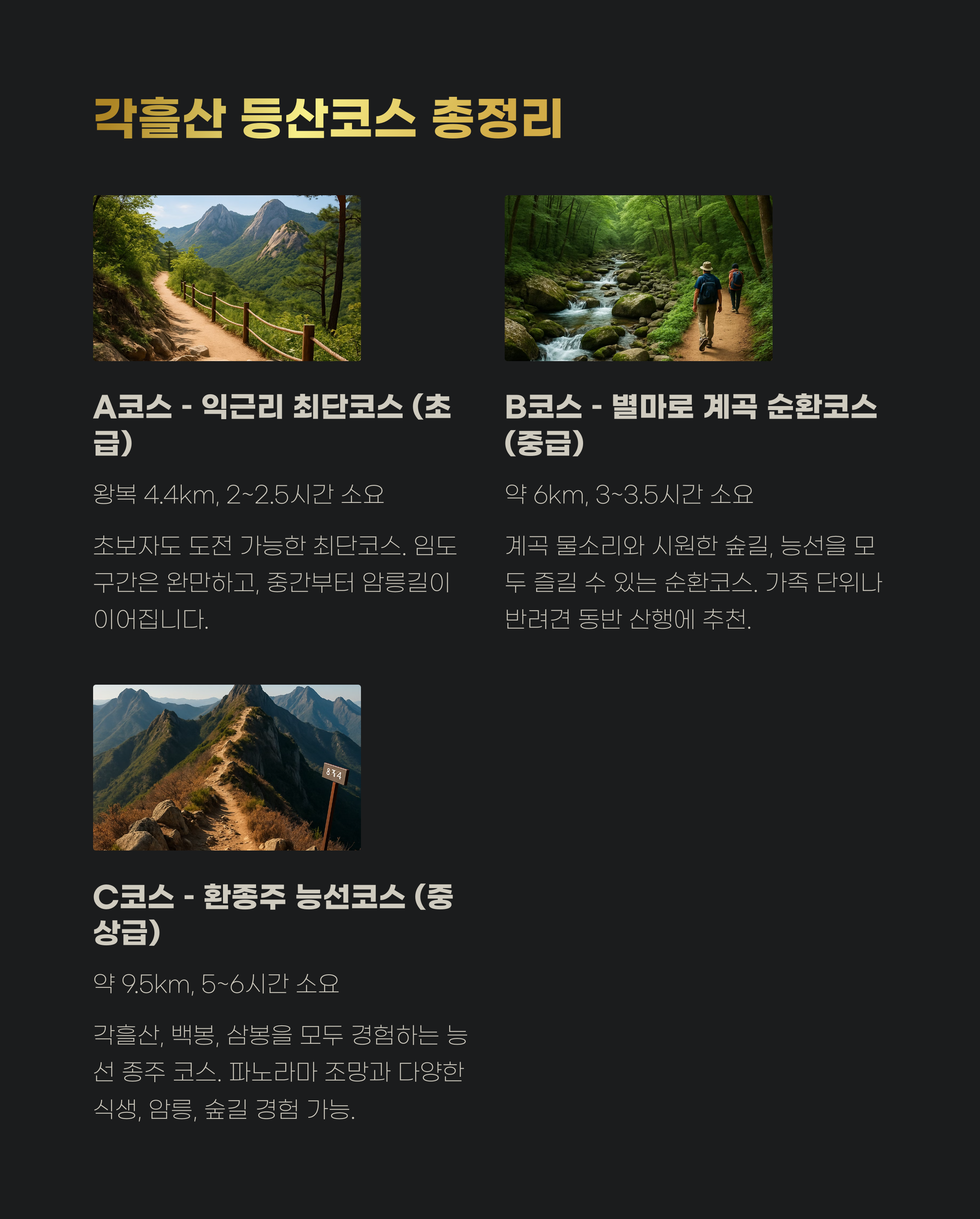 여러분의 각흘산 산행이 멋진 추억이 되길 바랍니다! 궁금한 점은 댓글로 남겨주세요 :)