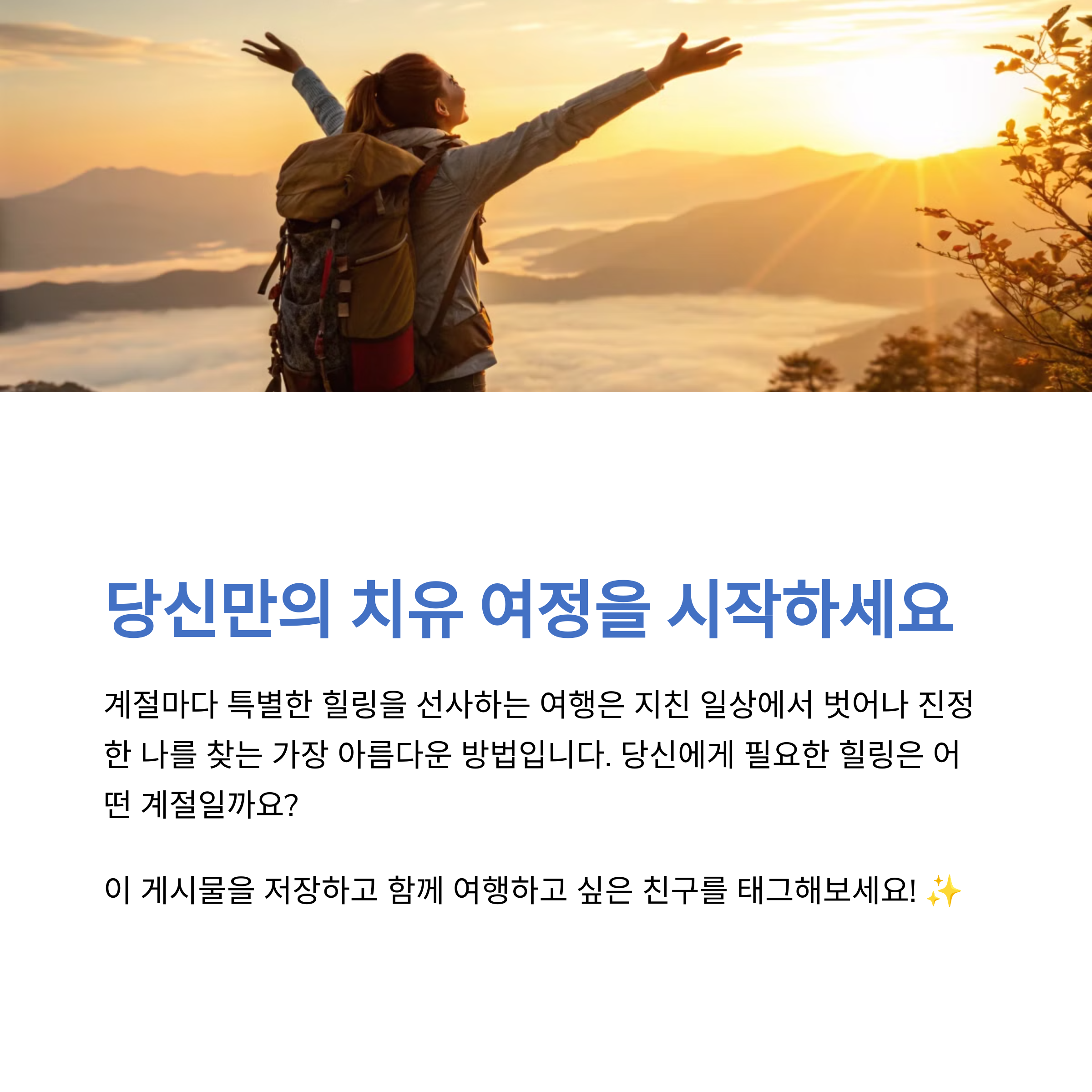 각 계절에 가장 깊게 닿는 힐링 여행지입니다.