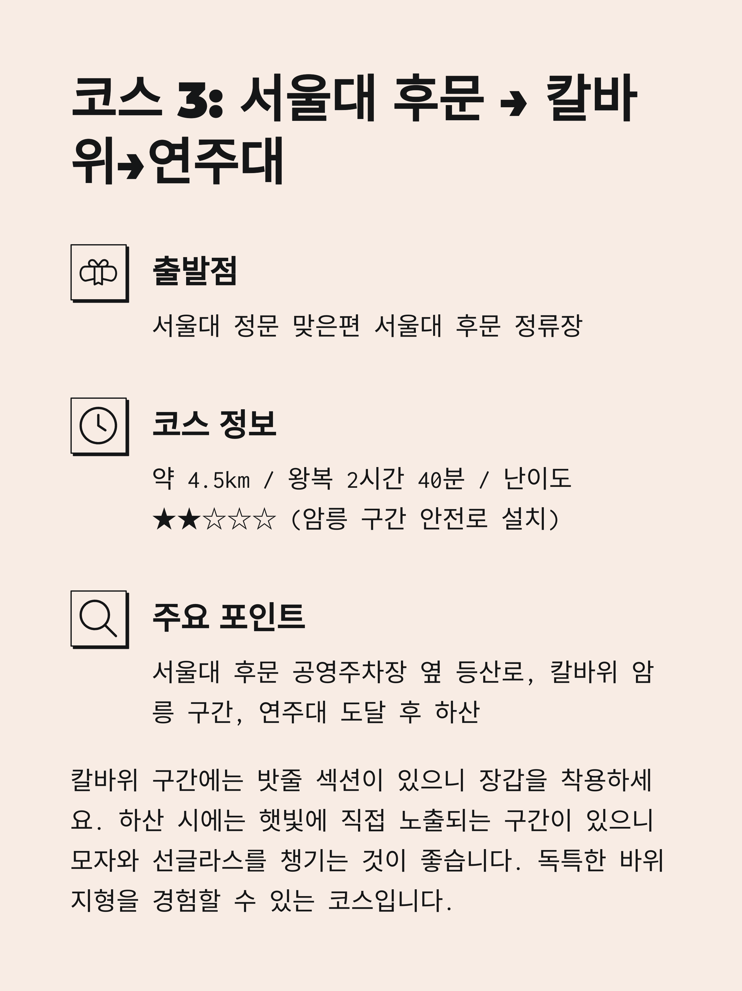 4. 초보 코스 3 – 서울대 후문 → 칼바위→연주대 코스