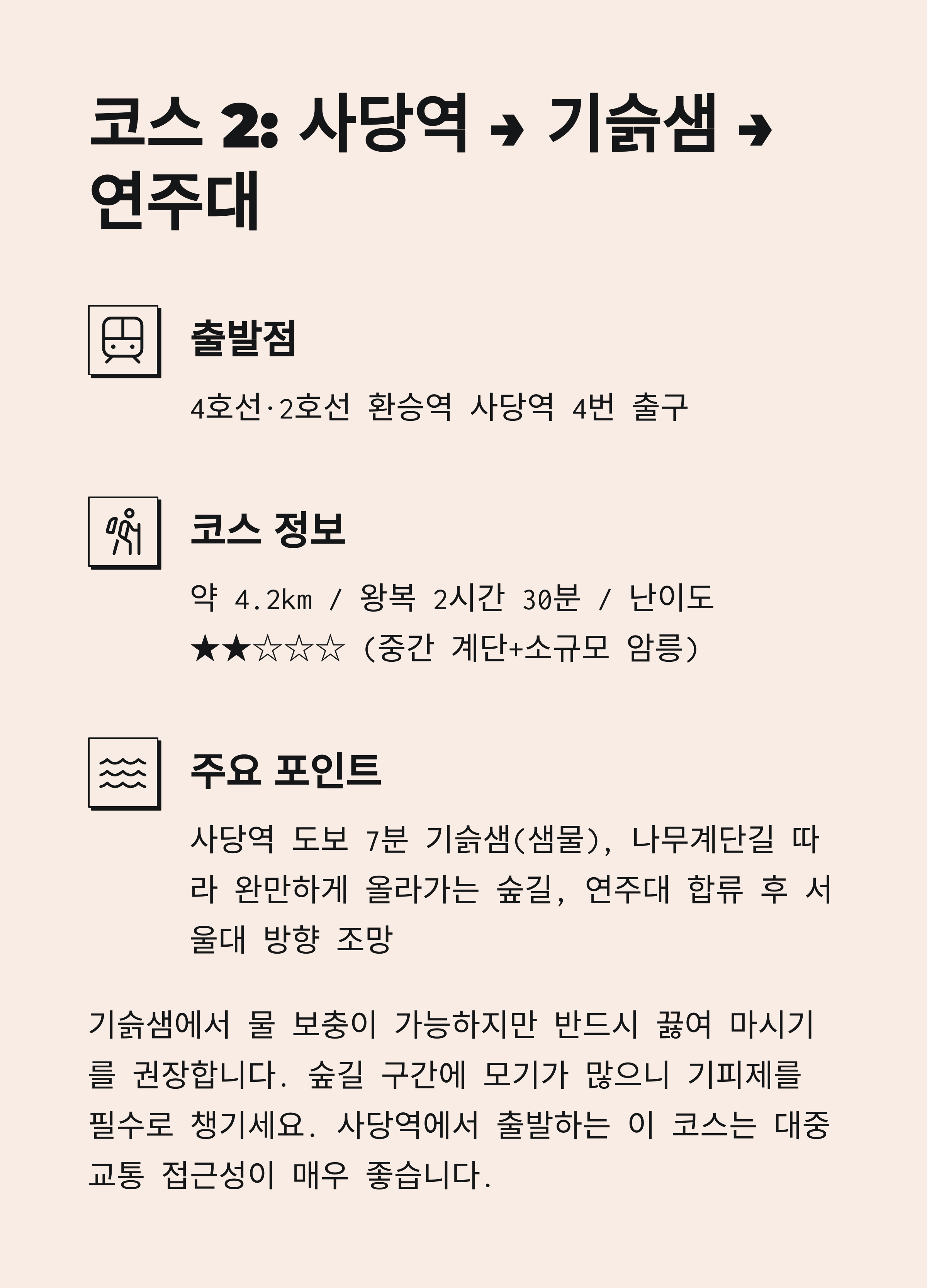 3. 초보 코스 2 – 사당역 → 기슭샘 → 연주대 코스