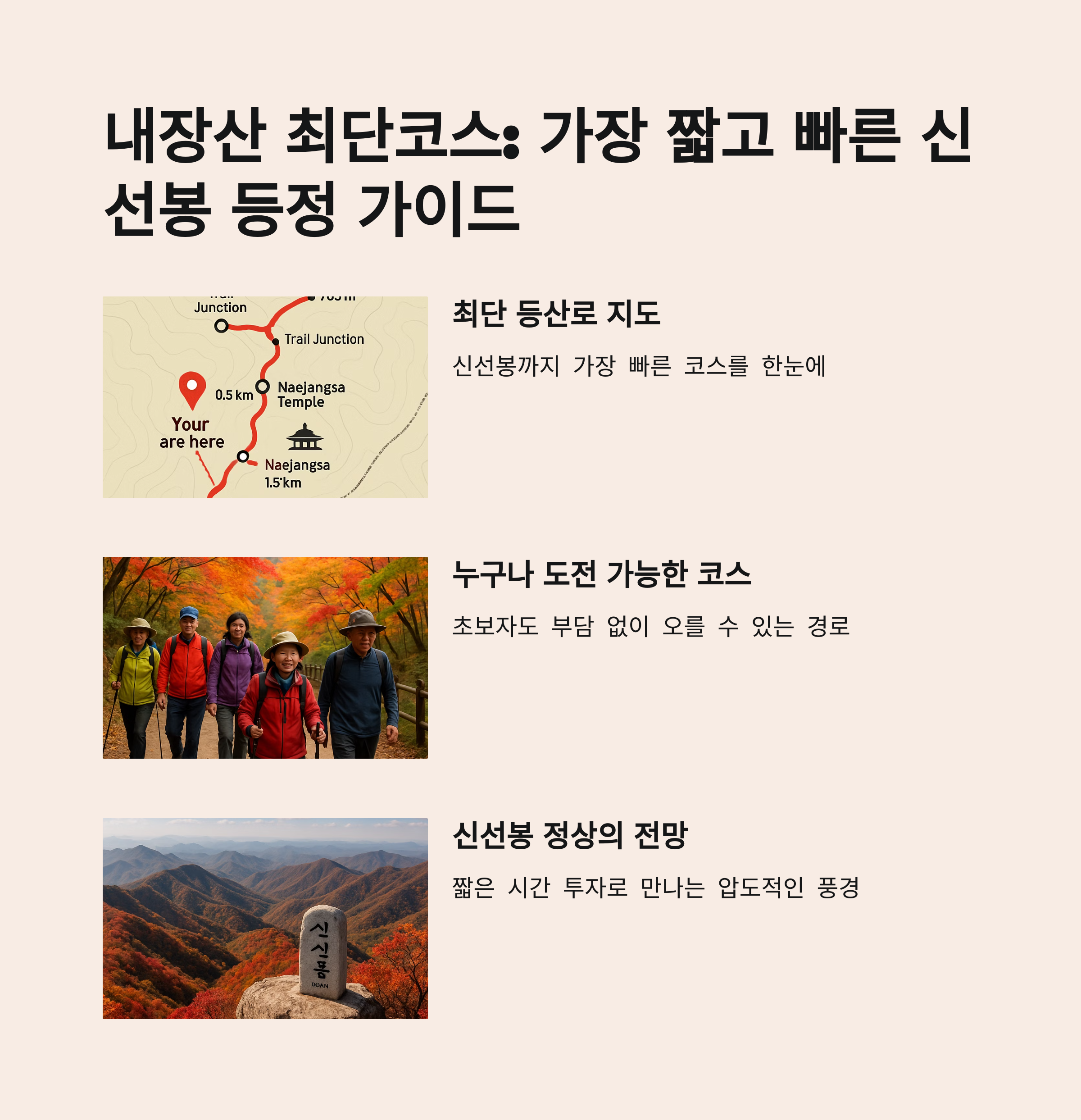 내장산 최단코스는 시간과 체력을 효율적으로 사용해 내장산의 최고봉 신선봉을 올려다볼 수 있는 특별한 루트입니다. 보통 코스에 비해 이동 거리가 짧아 부담이 적고, 호반길과 능선을 오가며 다양한 풍경을 만끽할 수 있습니다. 초보자부터 가족 산행까지 폭넓게 추천하는 내장산 최단코스의 모든 것을 지금부터 자세히 살펴보세요.