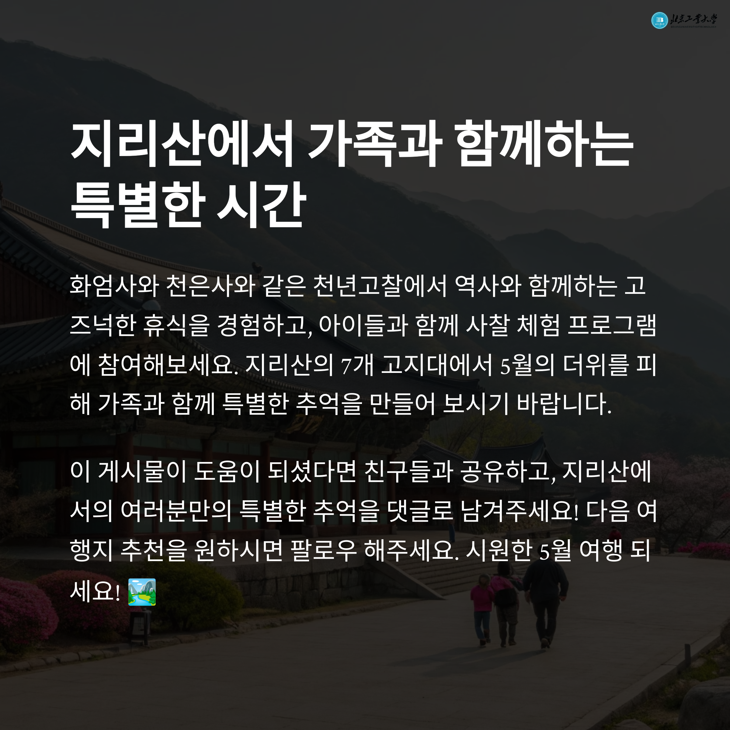 - 5월 지리산은 가족 단위 여행객에게 최적의 시기와 환경 제공