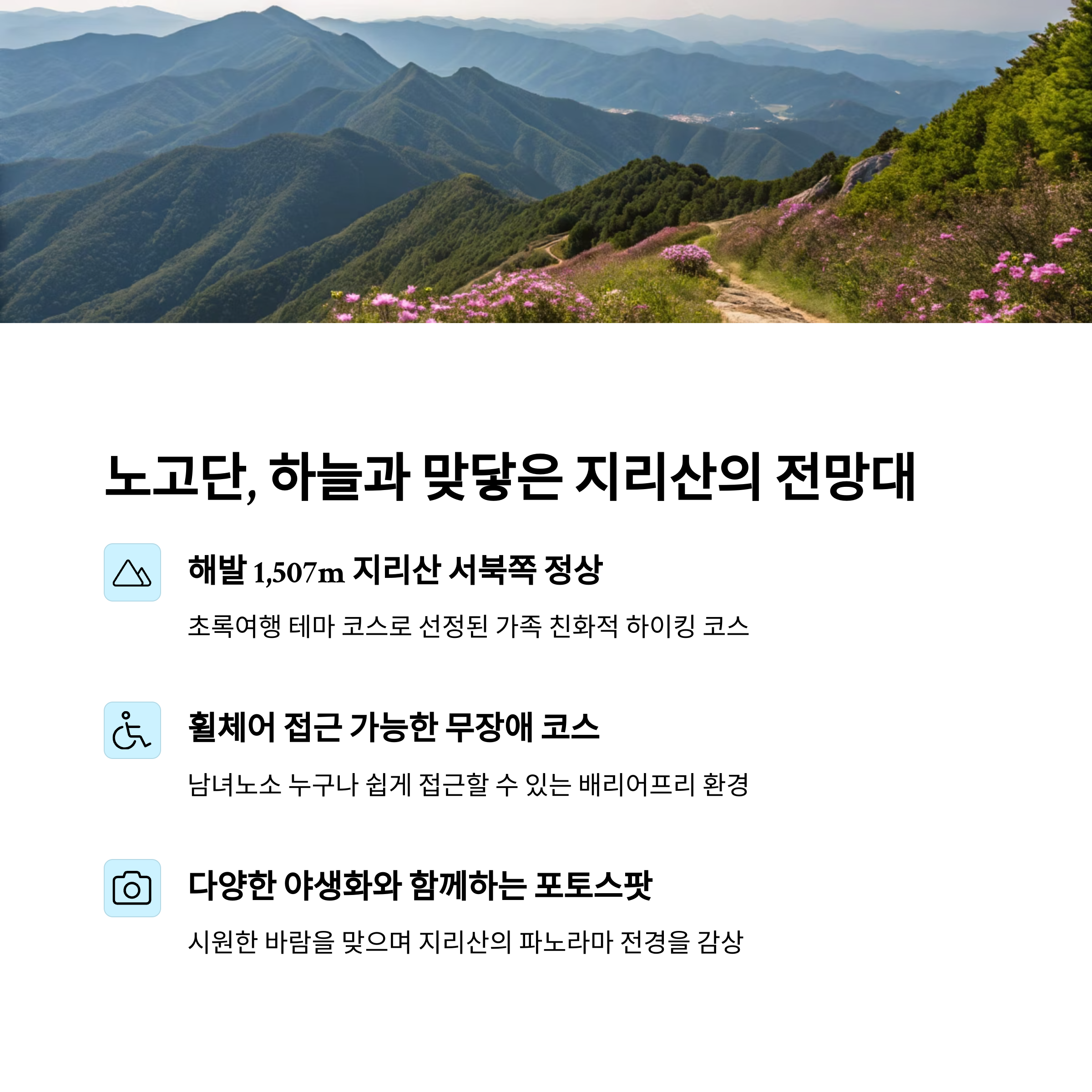 지리산의 고지대는 단순한 ‘산행’이나 ‘관광’을 넘어서, 가족 간의 소통과 자연과의 교감을 깊게 만들어주는 공간입니다. 도시에서의 피로와 더위를 벗어나, 지리산의 청량한 공기 속에서 소중한 사람들과 함께 여유를 누려보세요. 이번 여행이 여러분 가족의 오랜 기억 속에 따뜻한 추억으로 남길 바랍니다. 그리고 다음 여정으로는 여름 피서를 위한 강원도 고산 계곡 여행도 추천드릴게요. 더 늦기 전에, 자연 속으로 떠나보세요!