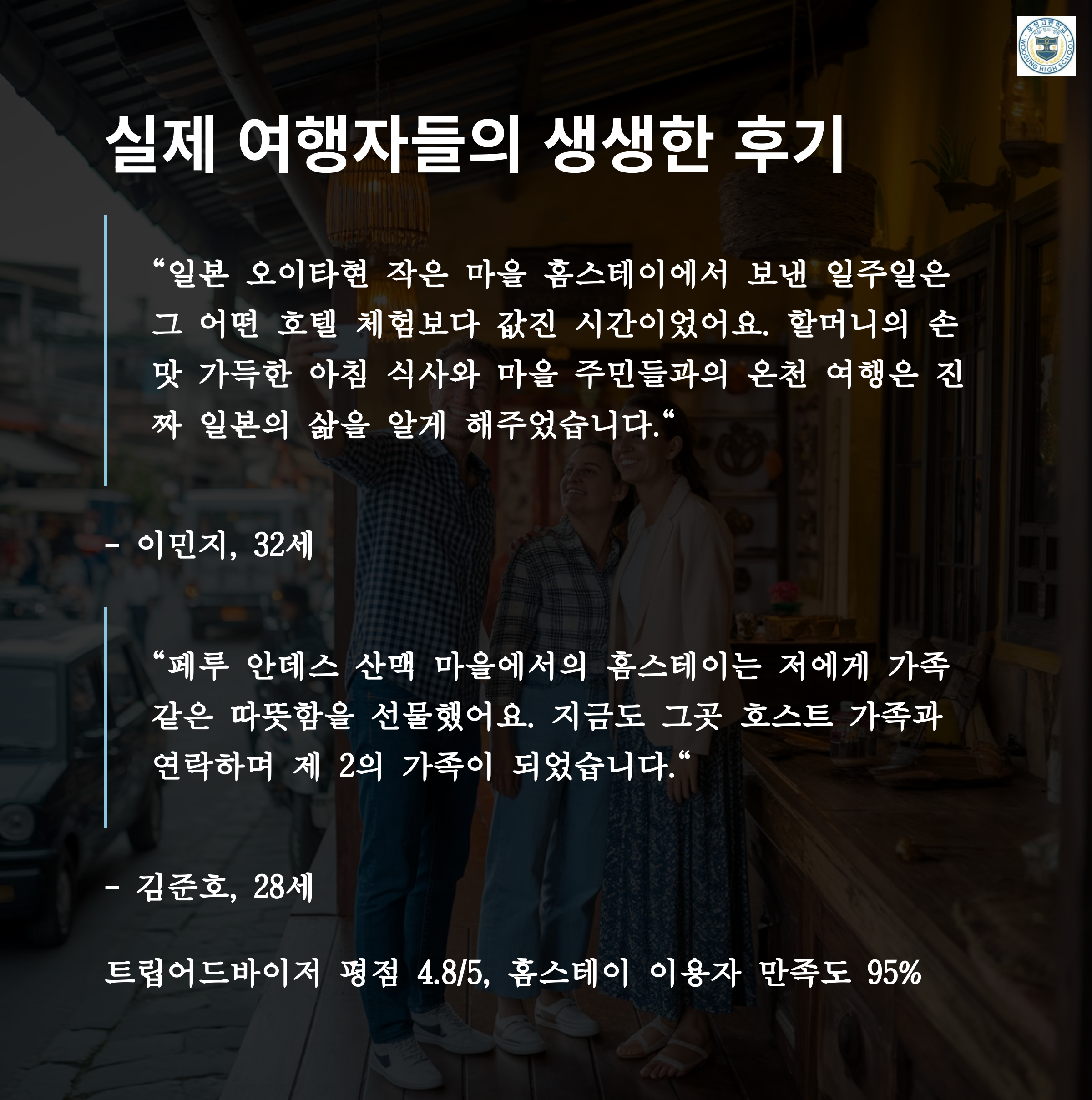 - 여행 팁: 로컬 홈스테이에서는 현지인의 전통 요리를 배우거나, 식사를 함께 나누며 그 지역의 문화와 역사를 배울 수 있습니다.