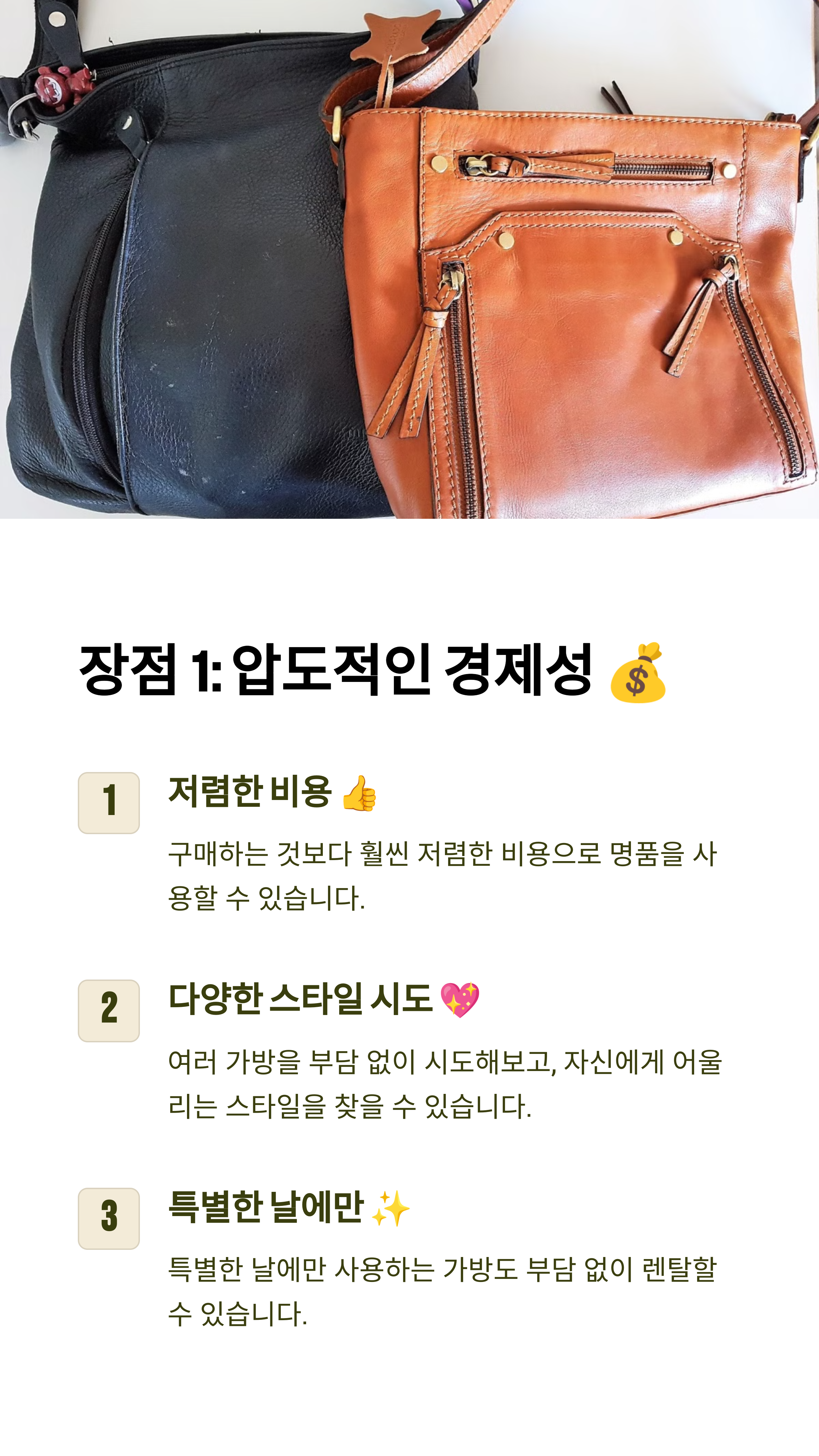 안녕하세요! 😊 요즘 명품 가방을 꼭 사지 않고도 렌탈해서 사용할 수 있다는 사실, 알고 계셨나요?
