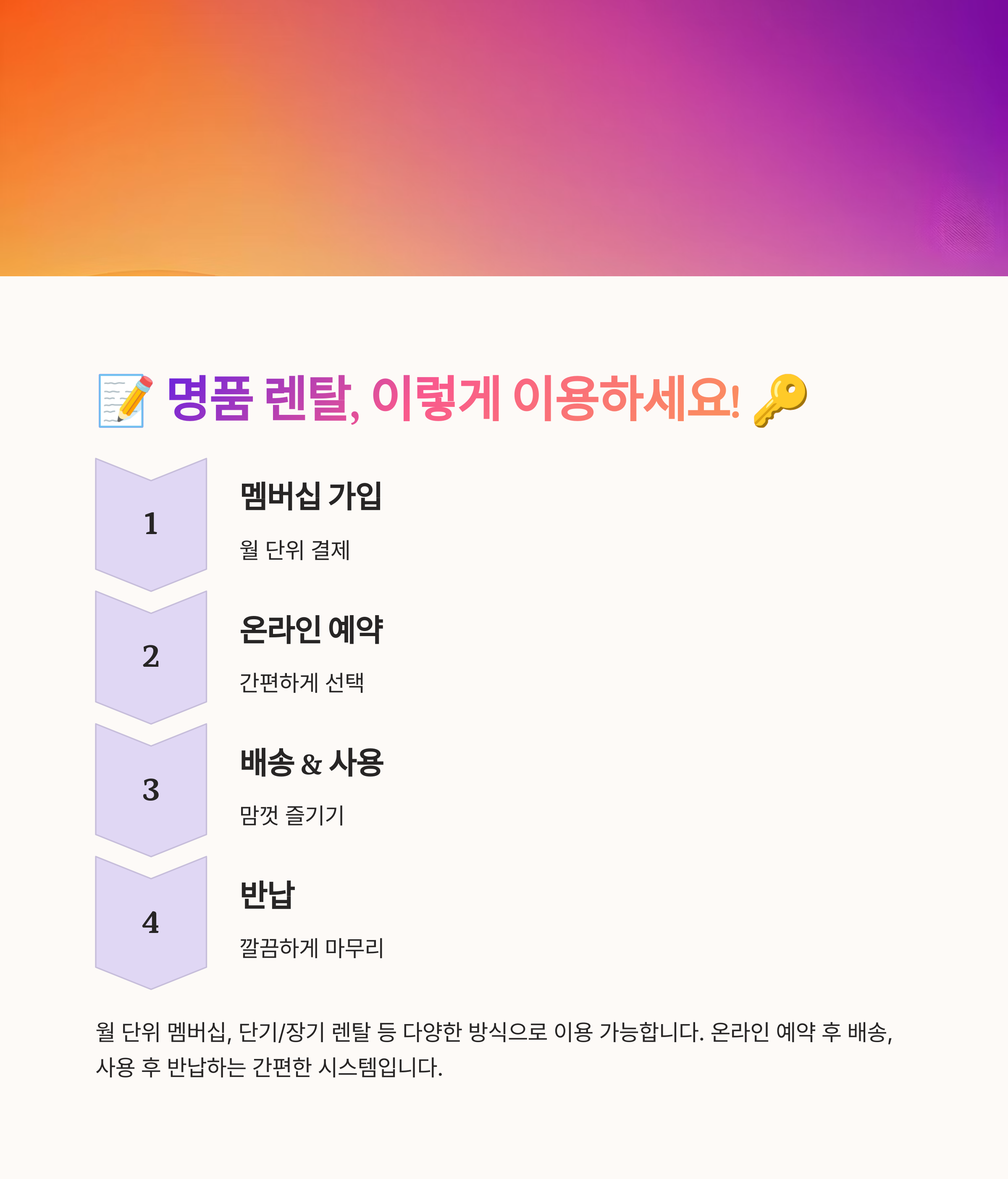 이런 궁금증을 가진 분들을 위해, 명품 렌탈의 모든 것을 알려드릴게요! 🚀