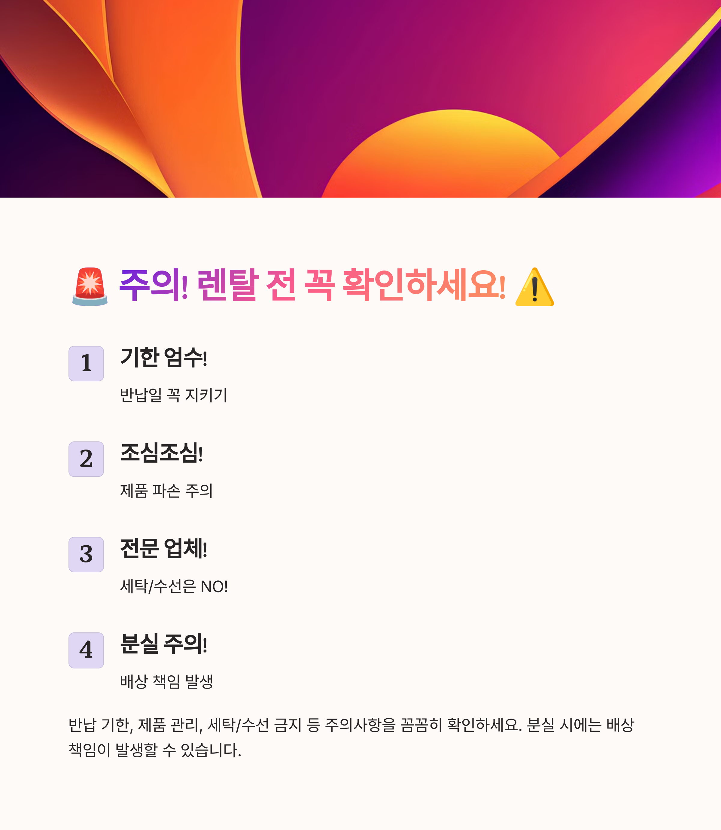 ✔ 약간의 사용 흔적은 문제가 안 되지만, 큰 손상이 생기면 수리 비용이 청구될 수 있어요.
