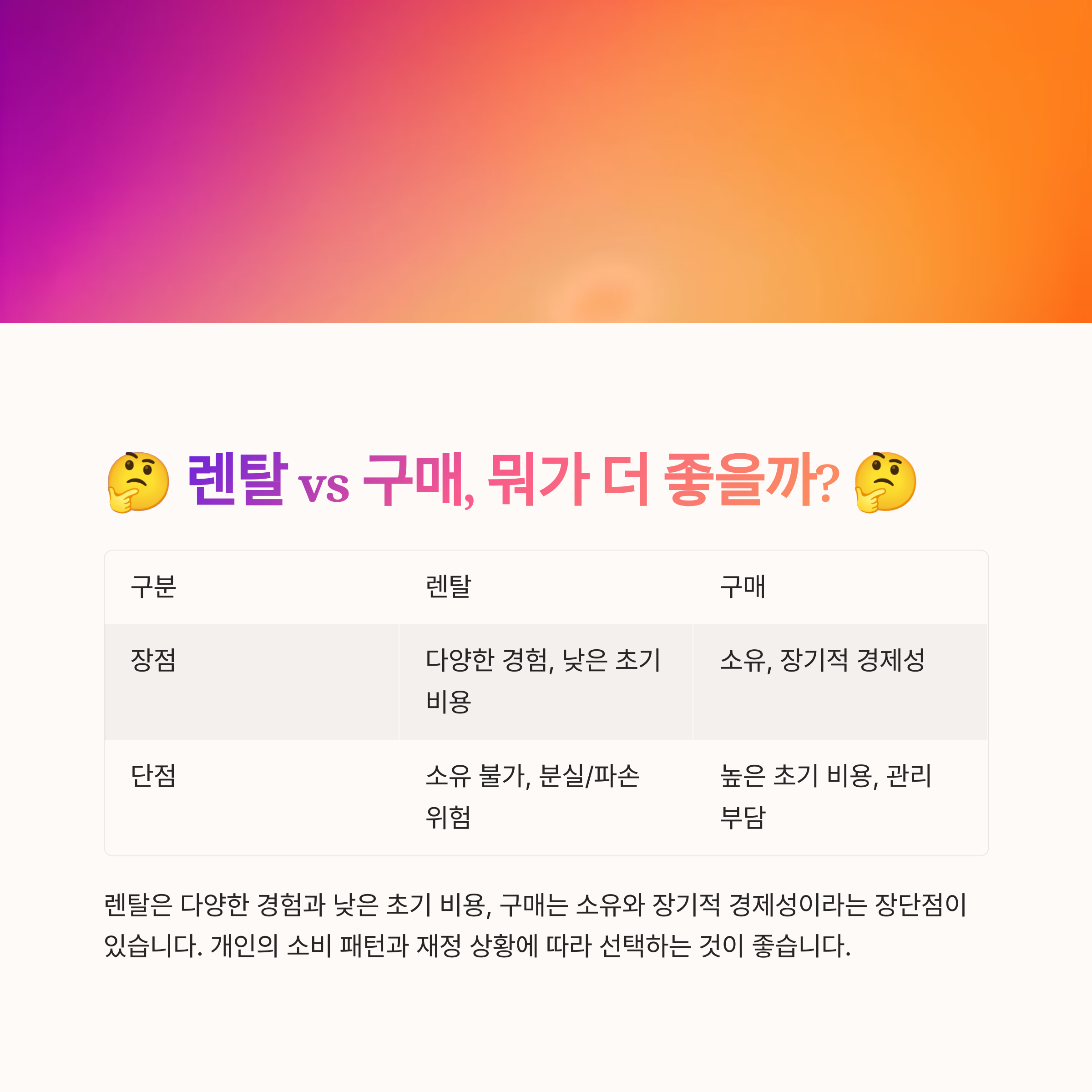 "나는 무조건 구매파다!" vs "렌탈이 합리적이다!" 여러분의 의견을 공유해주세요! 😊