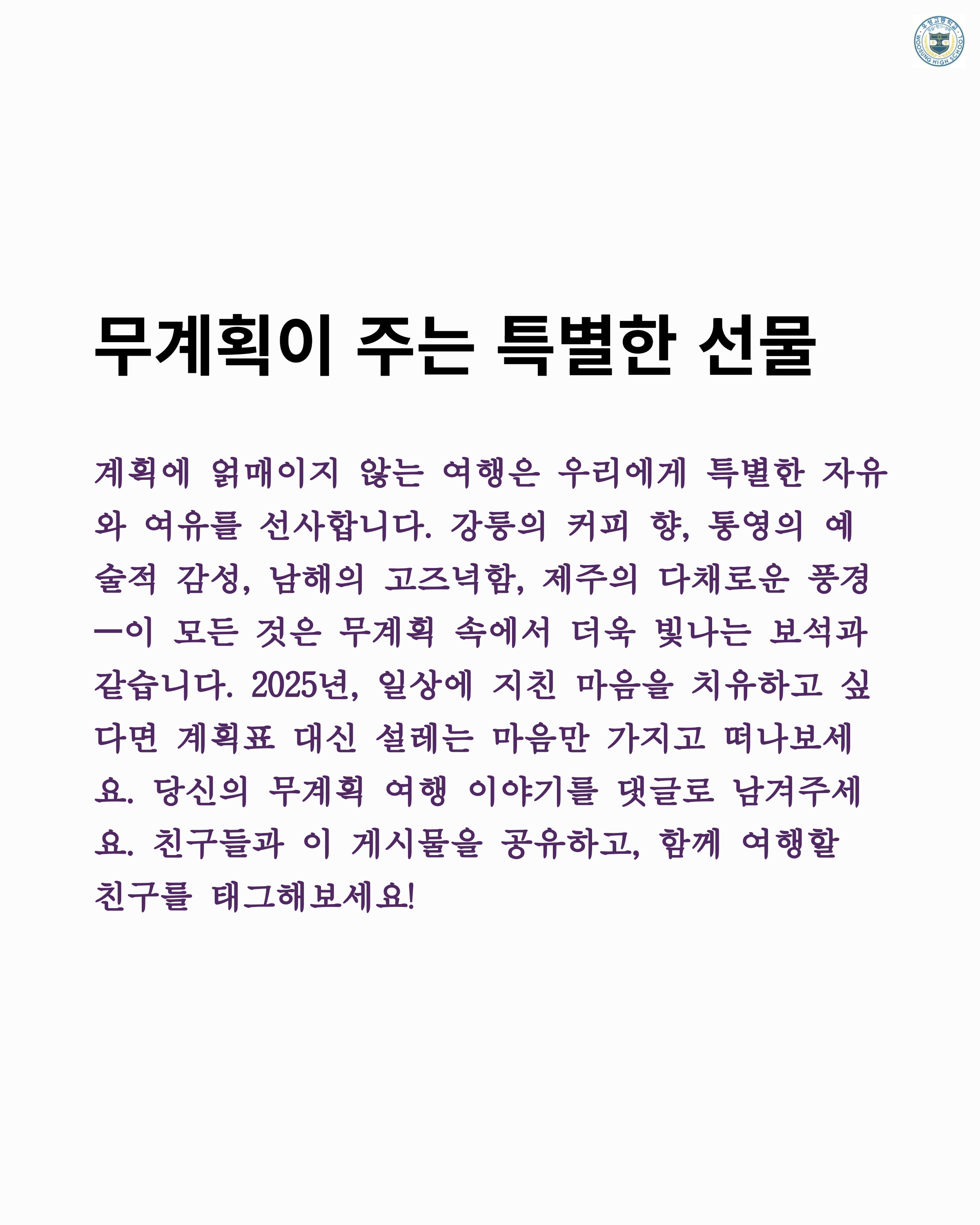 시간표 없는 하루, 당신만의 여행이 시작됩니다.