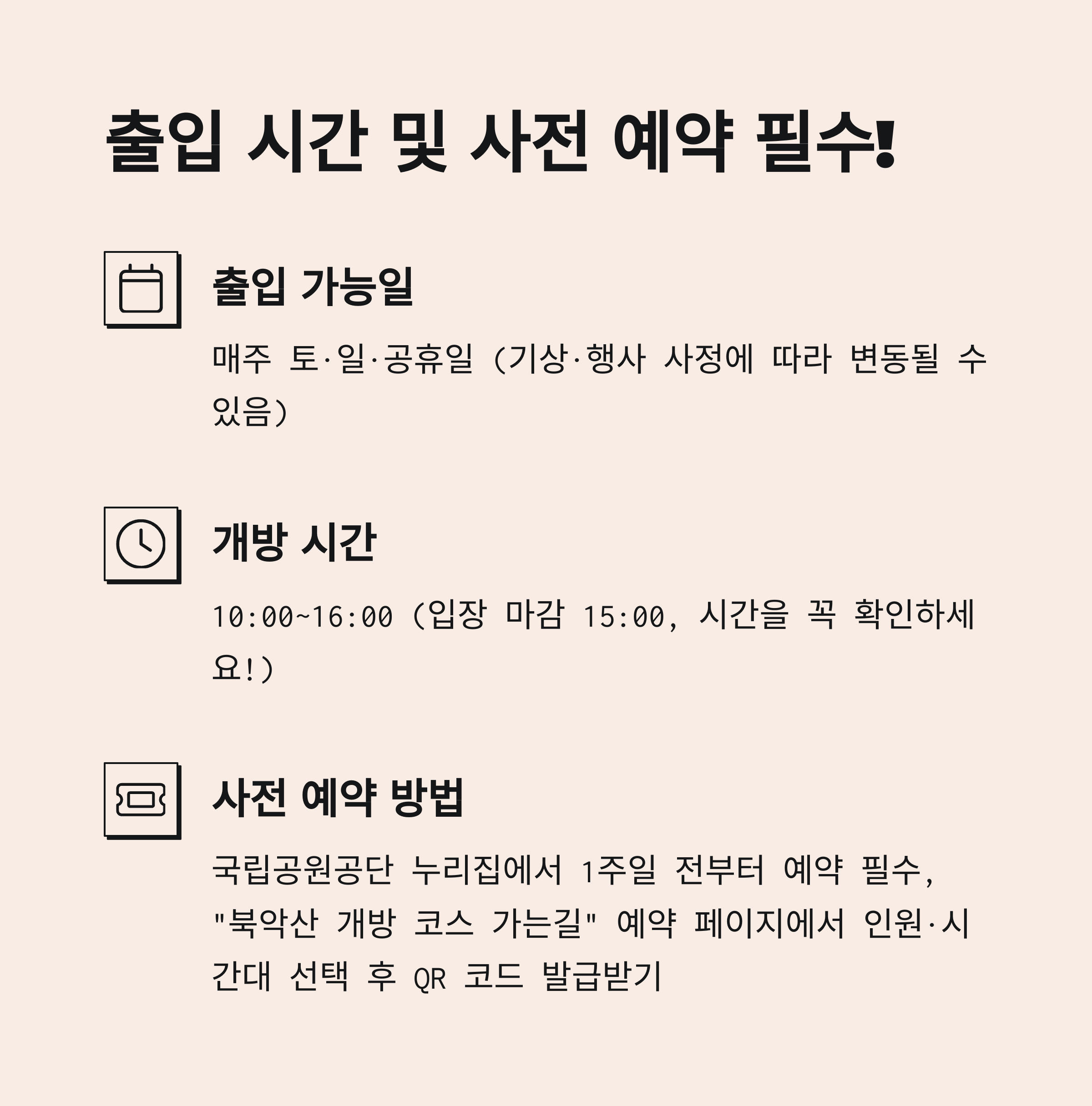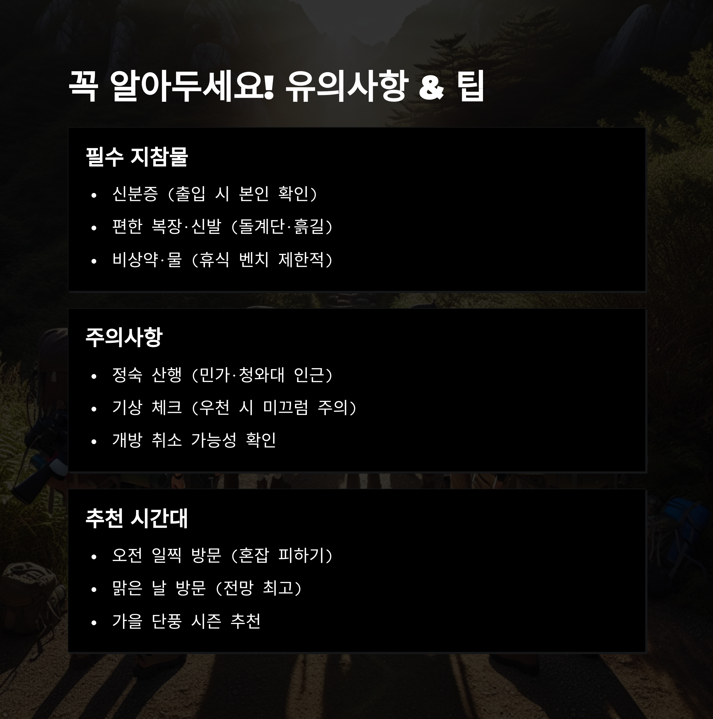 사전 예약: 국립공원공단 누리집에서 1주일 전부터 예약 필수