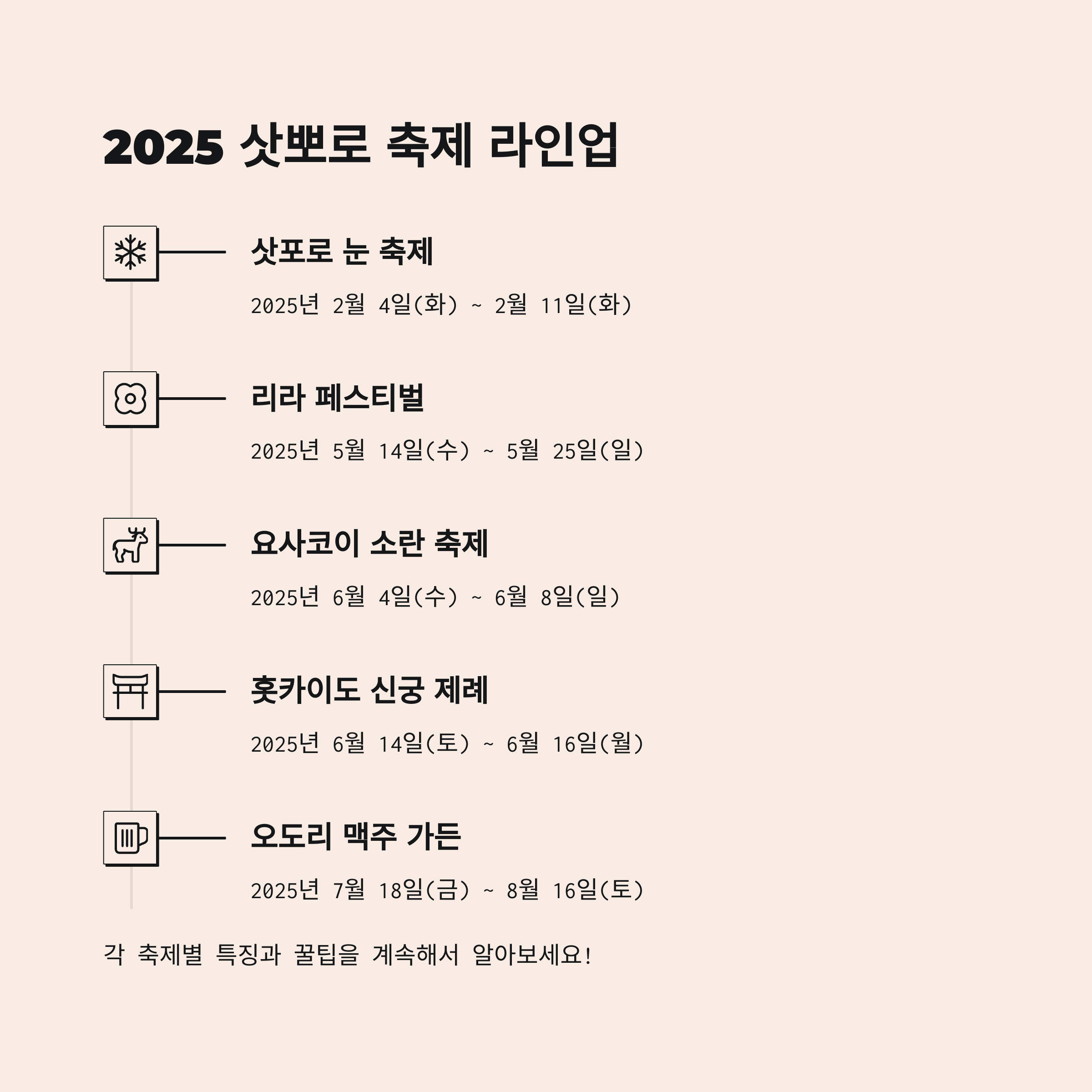 2025년 삿뽀로 주요 축제 일정을 한눈에! 눈 축제부터 리라·요사코이·신궁 제례·맥주 가든까지 일정·장소·꿀팁을 꼼꼼히 안내합니다.