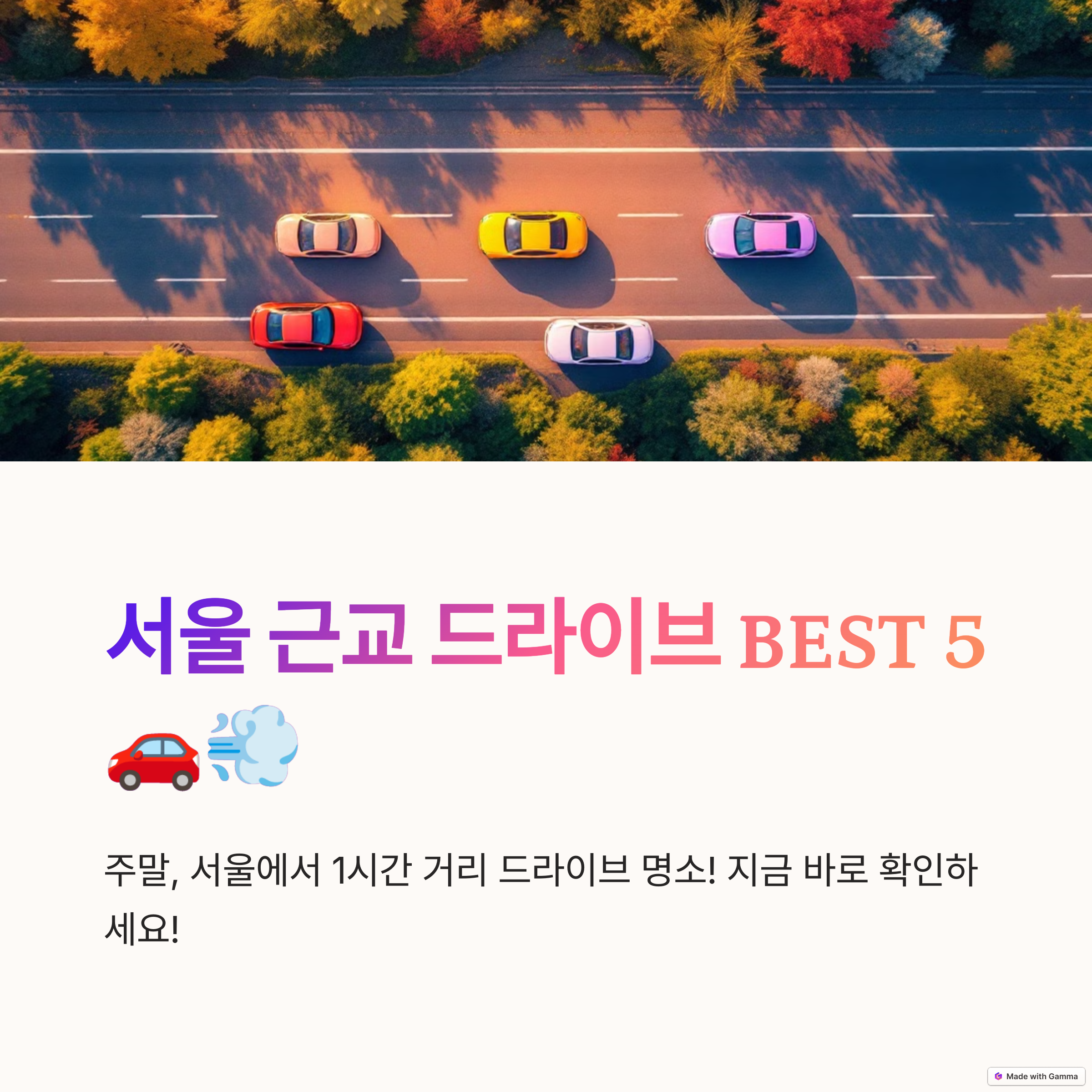 서울 근교에는 다양한 드라이브 코스가 있으며, 목적에 따라 최적의 코스를 선택할 수 있습니다. 한적한 도로에서 힐링하고, 멋진 풍경을 감상하며 특별한 하루를 보내보세요!