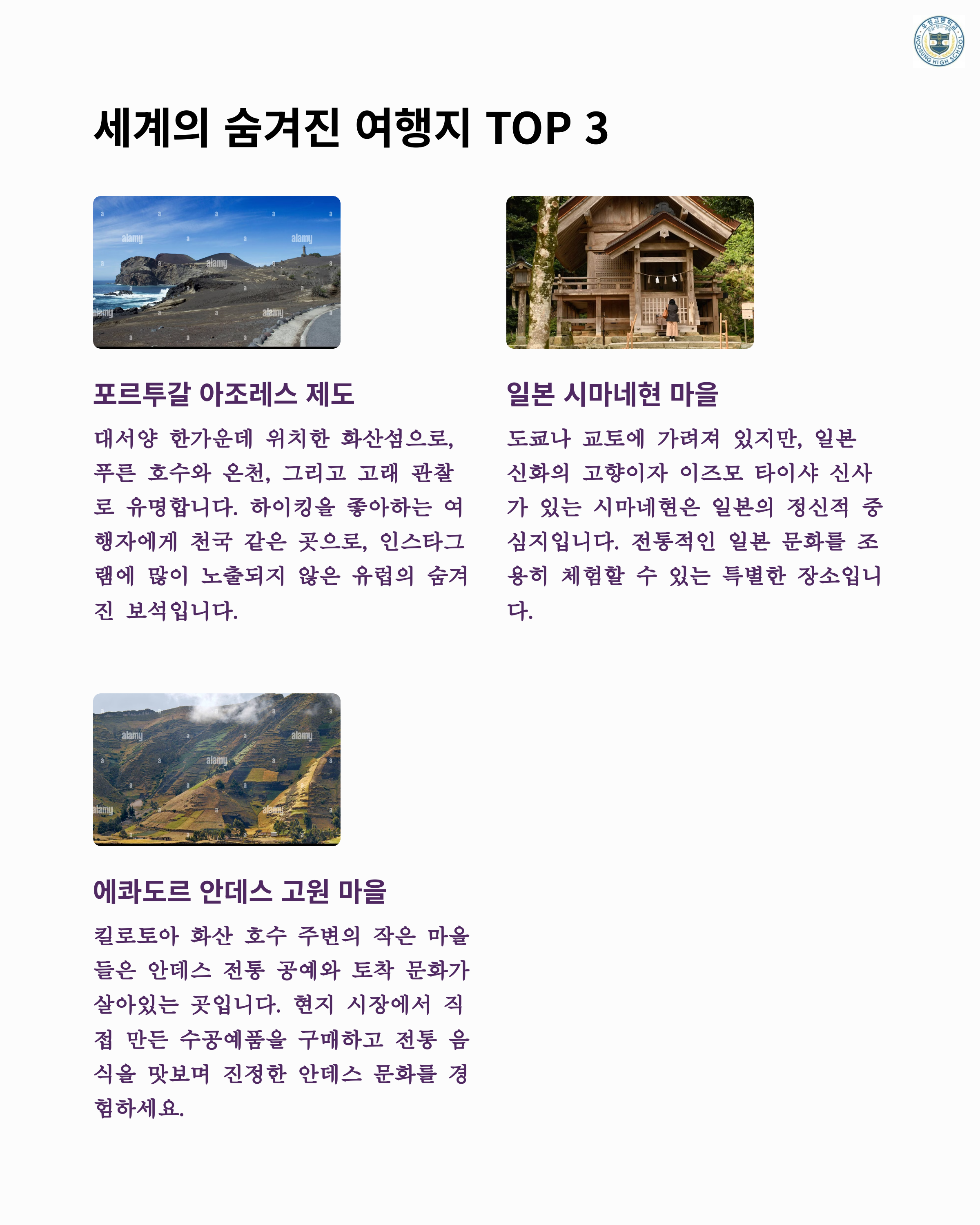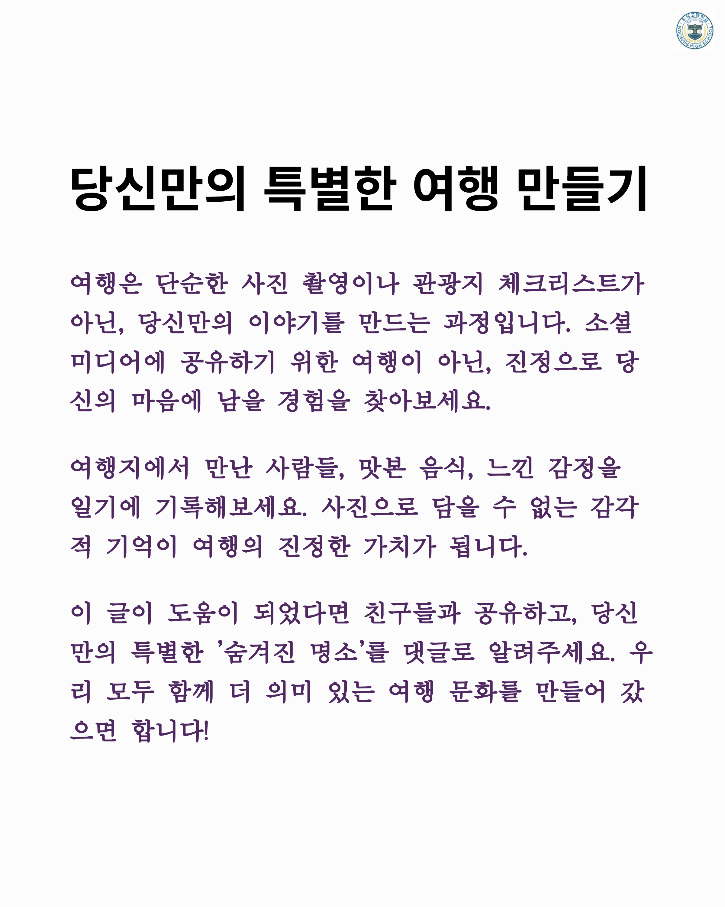 - 나만의 추억을 채우는 여정: 가이드북에는 없는 장소에서, 나만의 이야기가 만들어집니다.