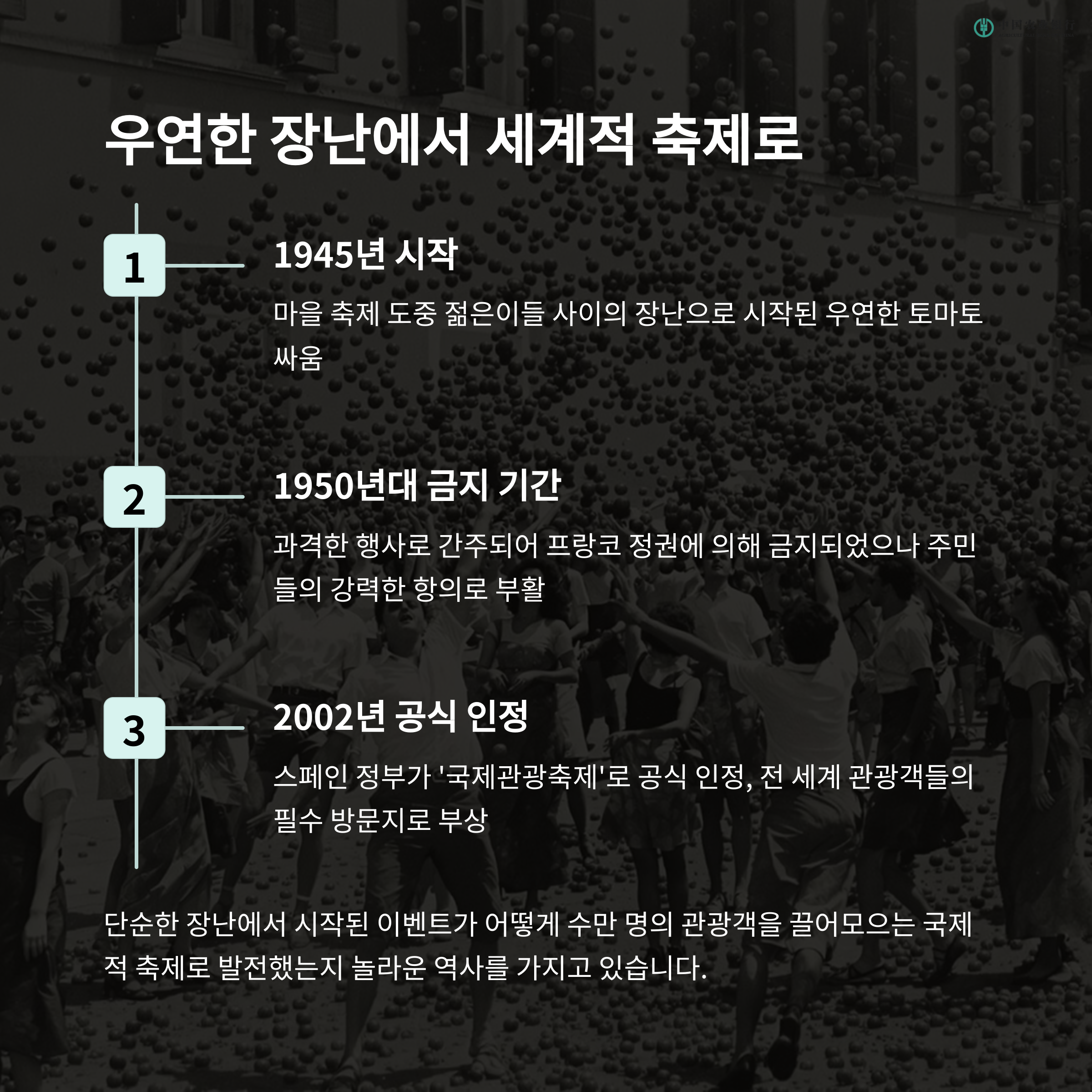 1945년, 한 마을의 축제에 참가한 사람들이 시장 근처에서 우연히 토마토를 던지기 시작한 것이 발단이었습니다.