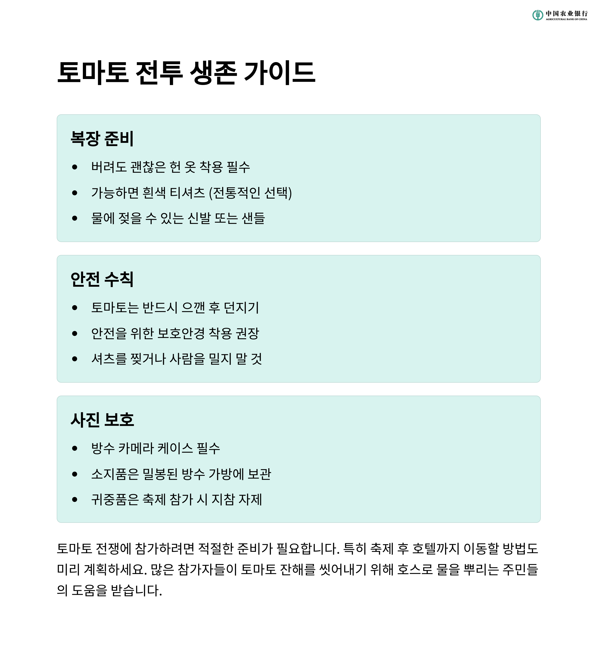 토마토 던지기는 위험할 수 있기 때문에 안전 규칙을 따르고, 항상 주위를 확인하는 것이 중요합니다.