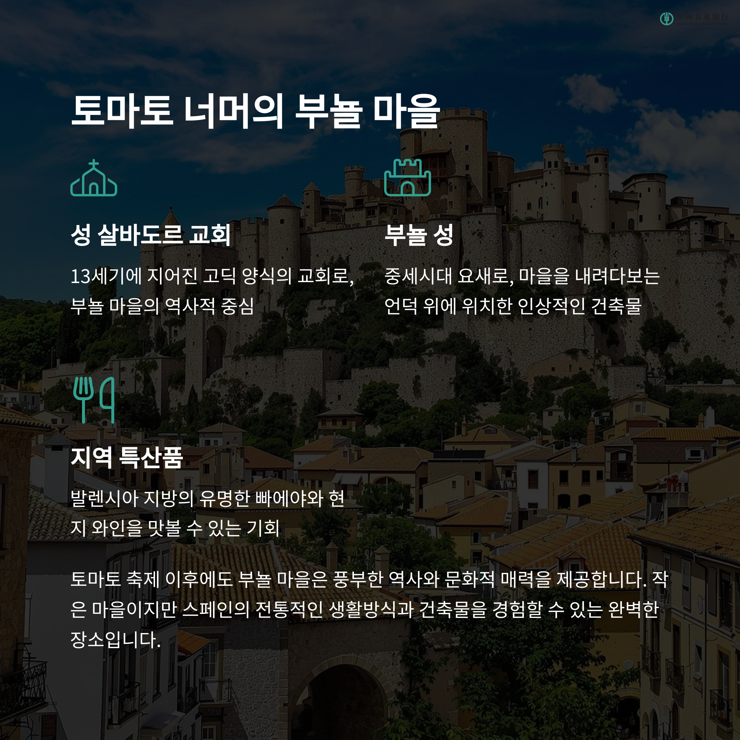 축제 전후, 부뇰의 역사적 명소를 방문하며 스페인의 문화를 만끽해보세요.