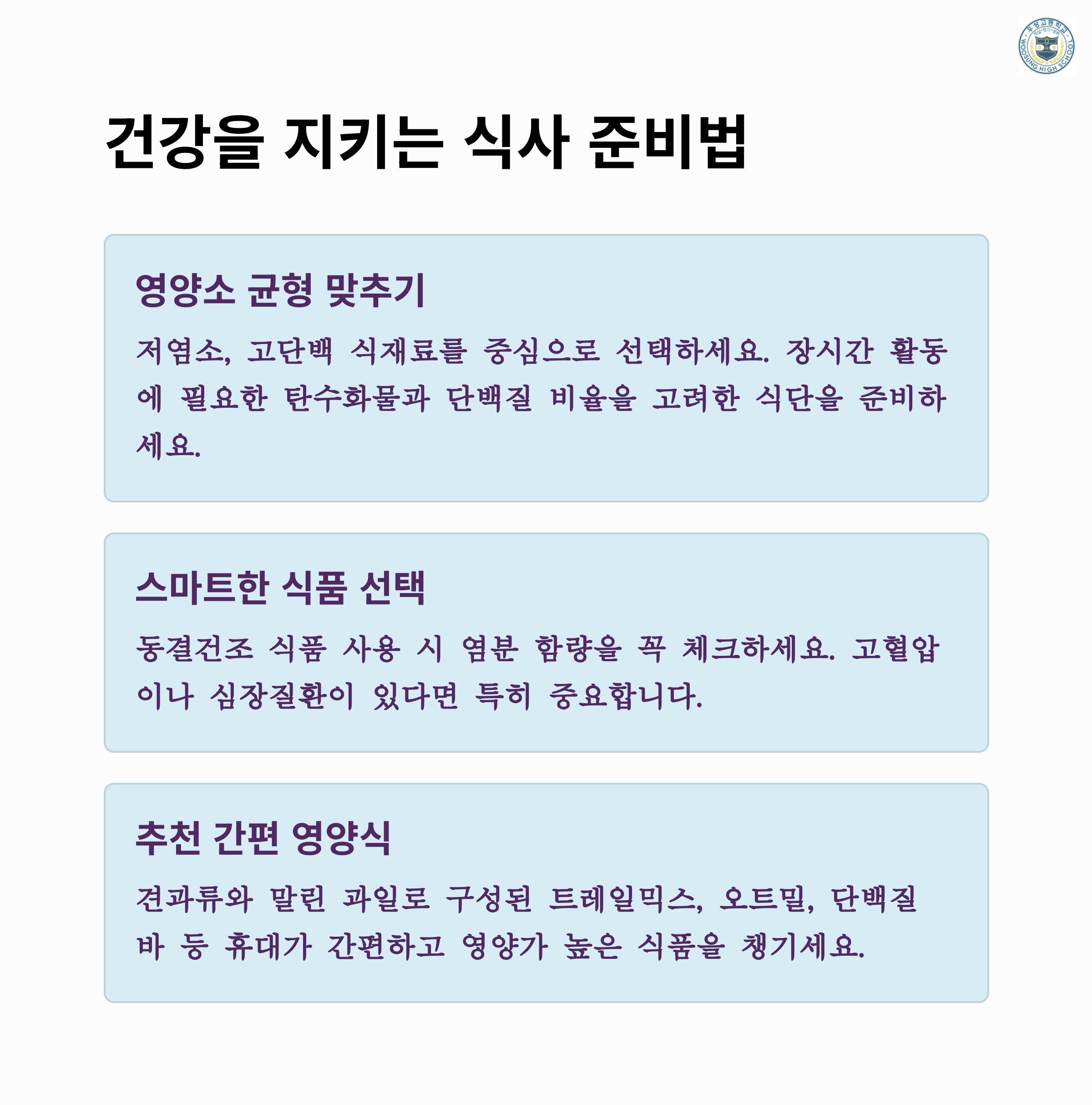 - 🥗 건강한 식사 준비: 건강한 간식 및 식사 챙기기
