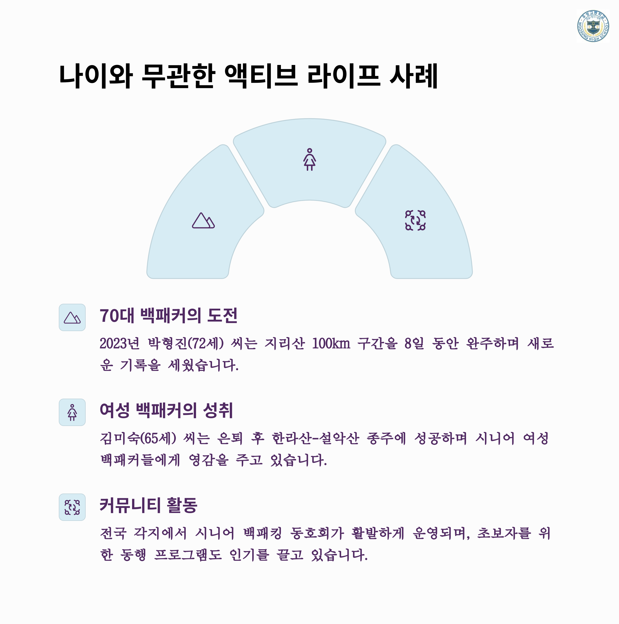 체력 관리는 시니어 백패킹의 핵심입니다.