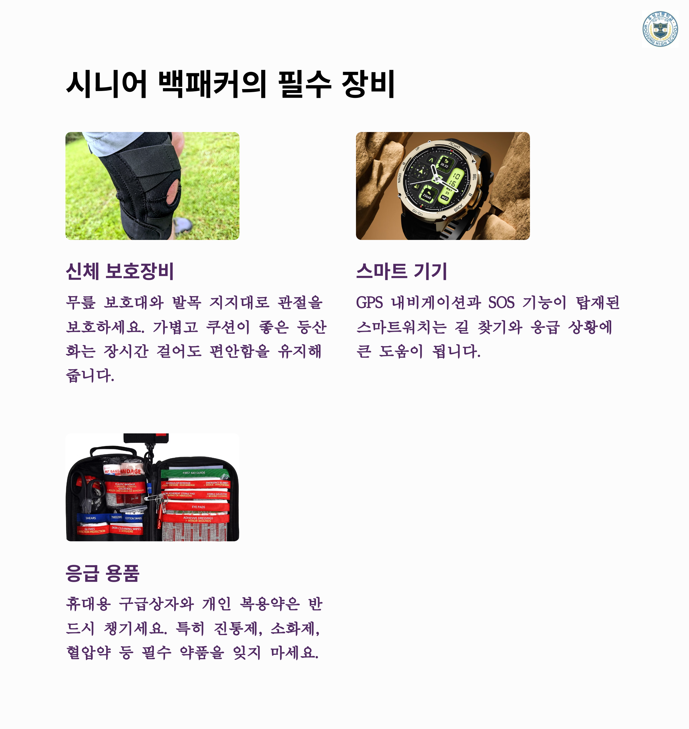 시니어 백패킹에서 안전은 가장 중요한 요소입니다.