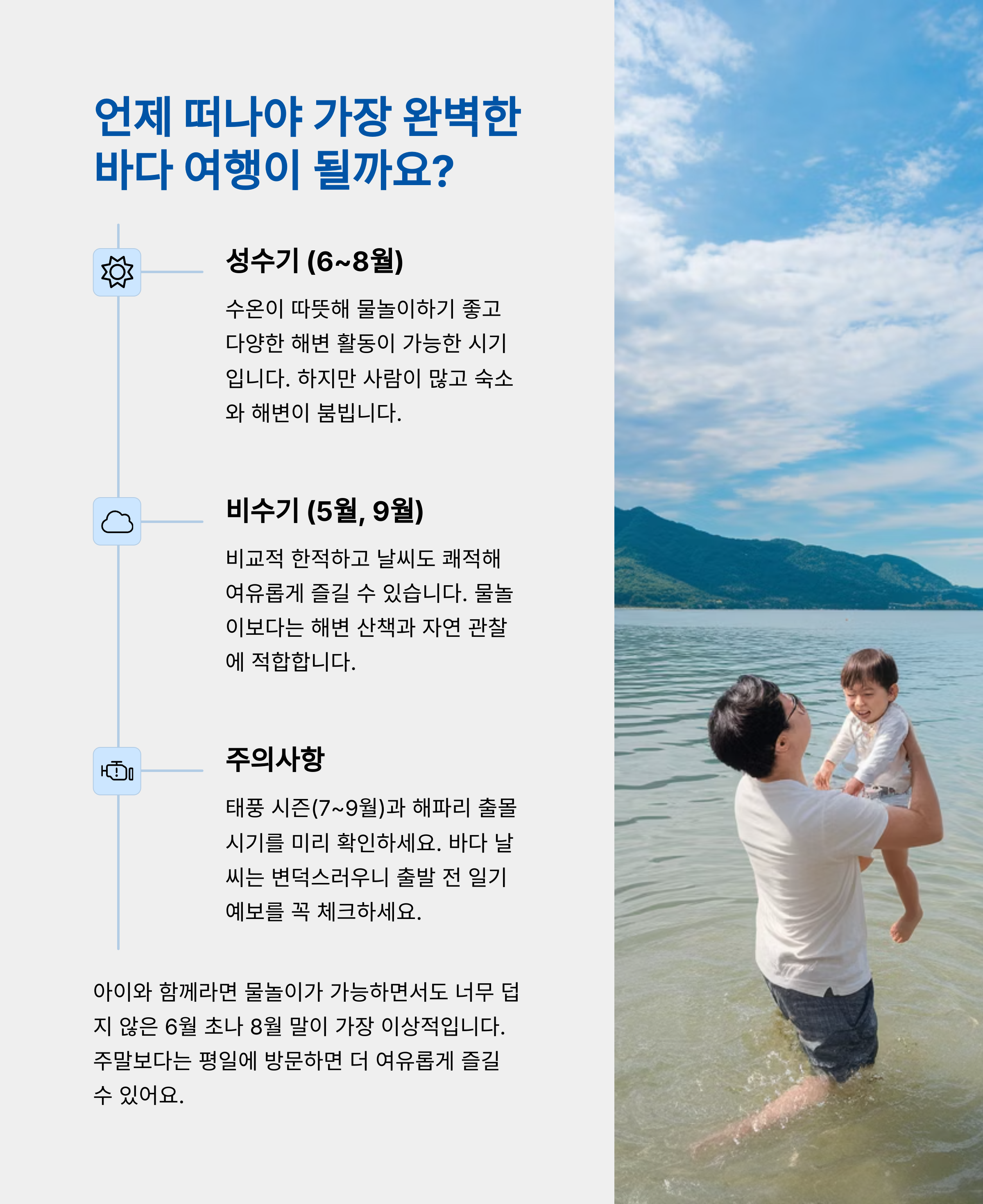 "과열되지 않은 시기엔 아이도, 부모도 스트레스 없이 즐길 수 있어요." 🌊