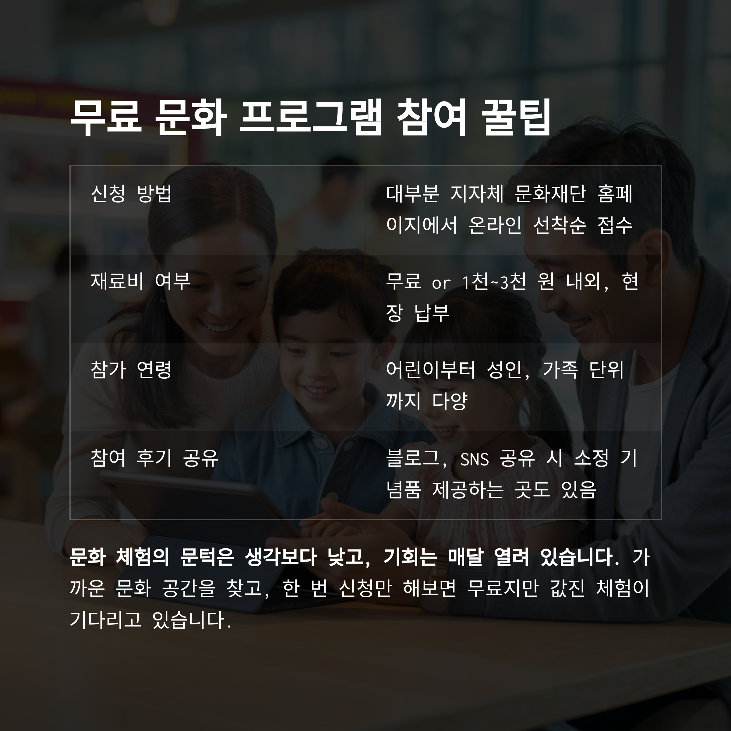 무료 문화 프로그램 참여 꿀팁