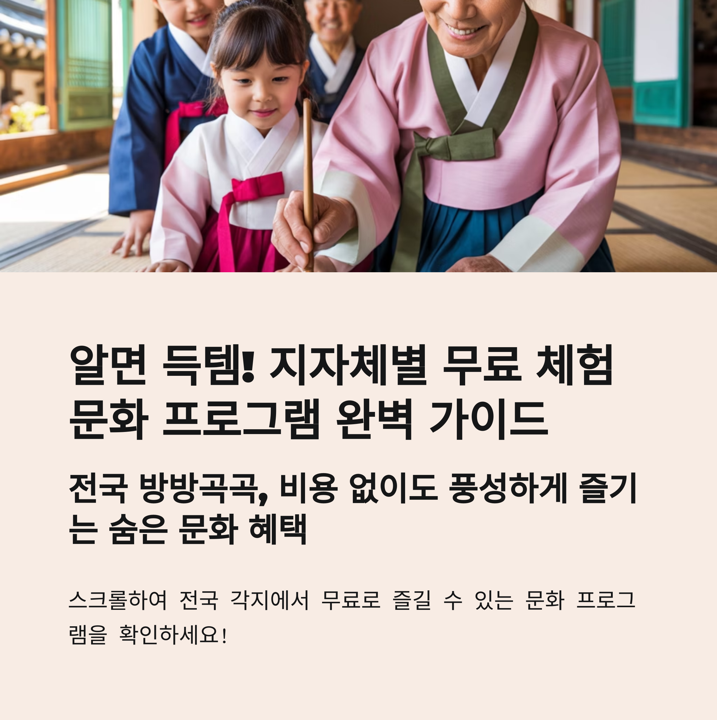 이번 글에서는 2025년 5월 기준, 지역별로 체험 가능한 무료 문화 프로그램을 정리해