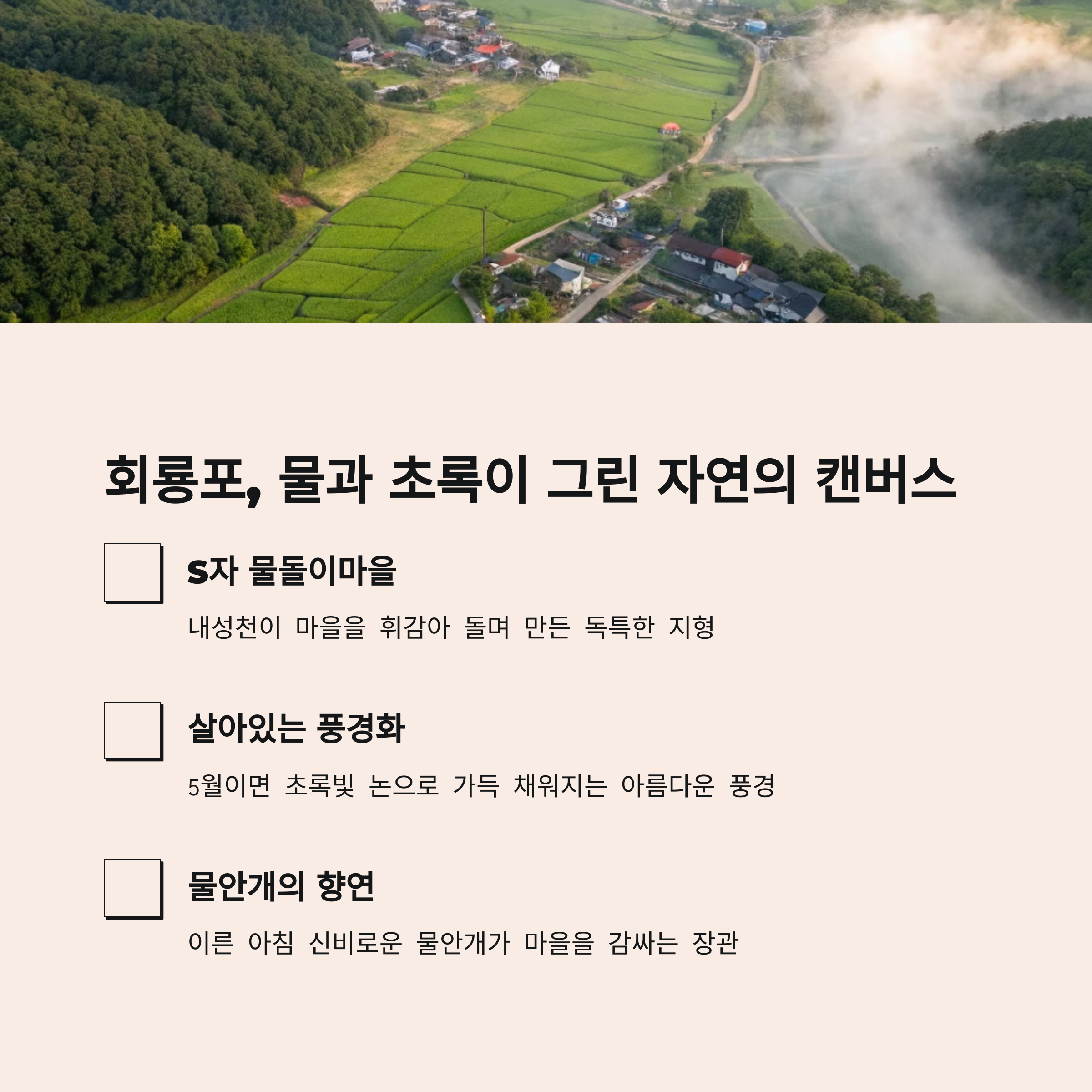 그 중심에는 S자 모양의 물돌이마을 회룡포와