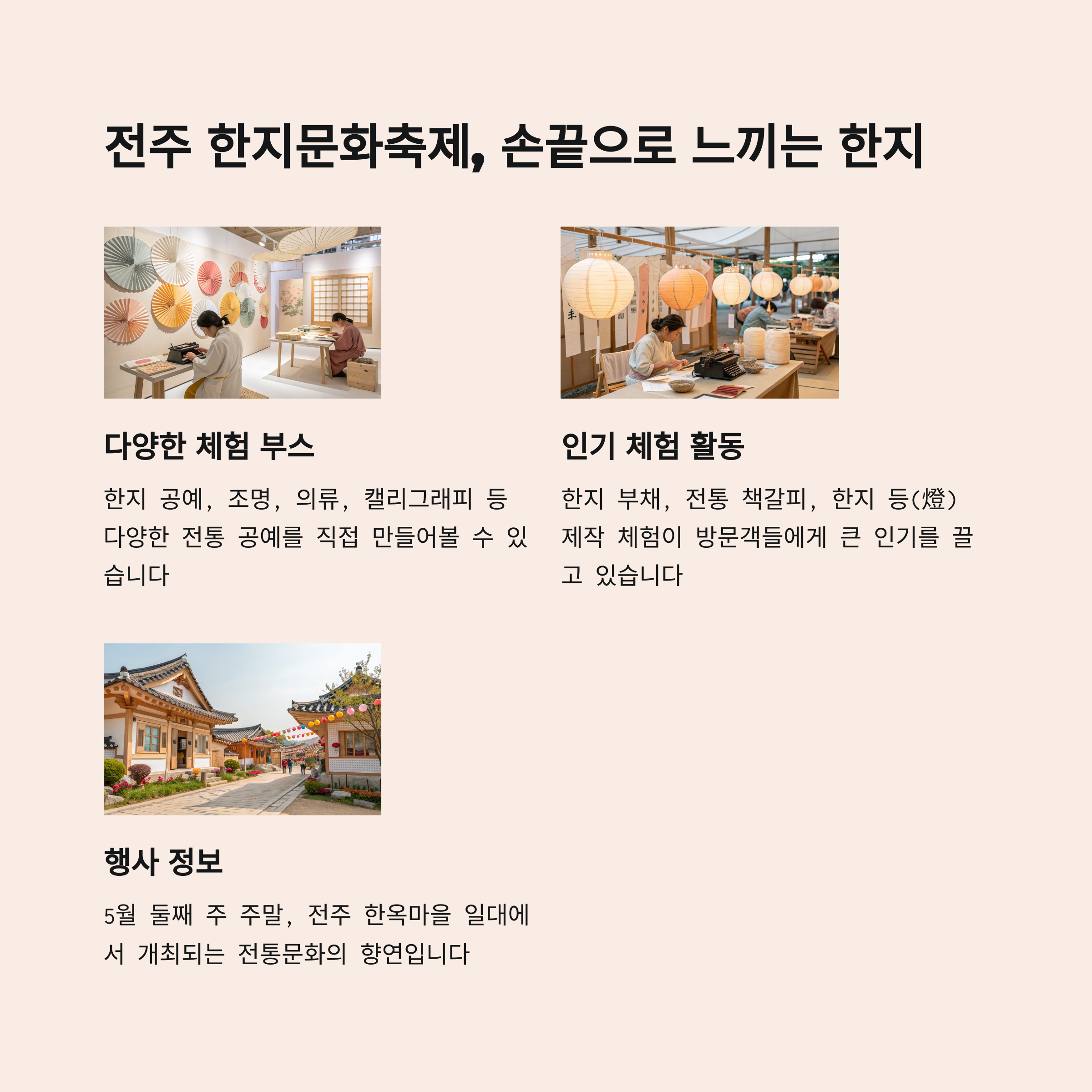 특히 한지 부채 만들기, 전통 책갈피, 한지 등(燈) 제작 등은