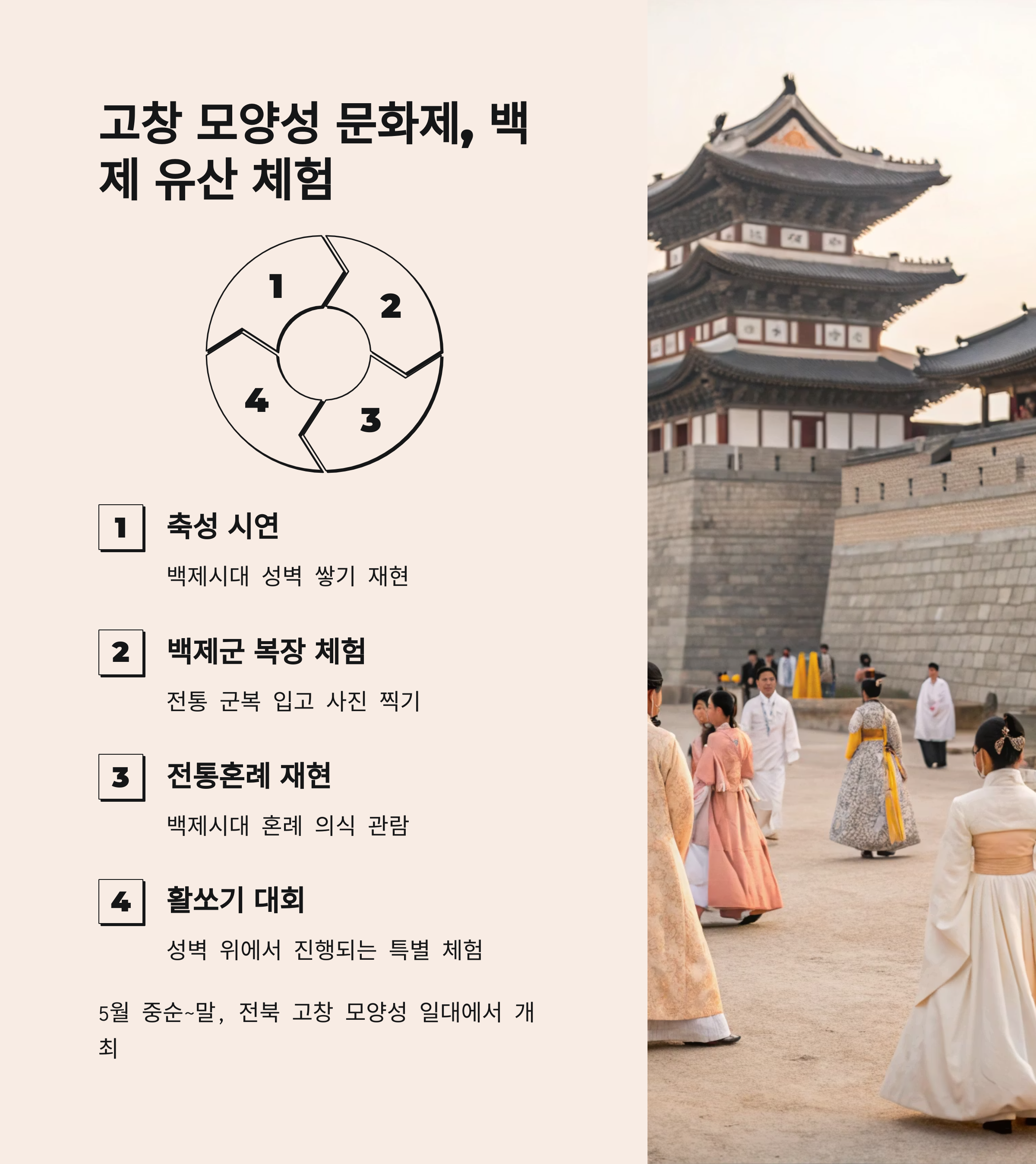 축성 시연, 백제군 복장 체험, 전통혼례 재현 등