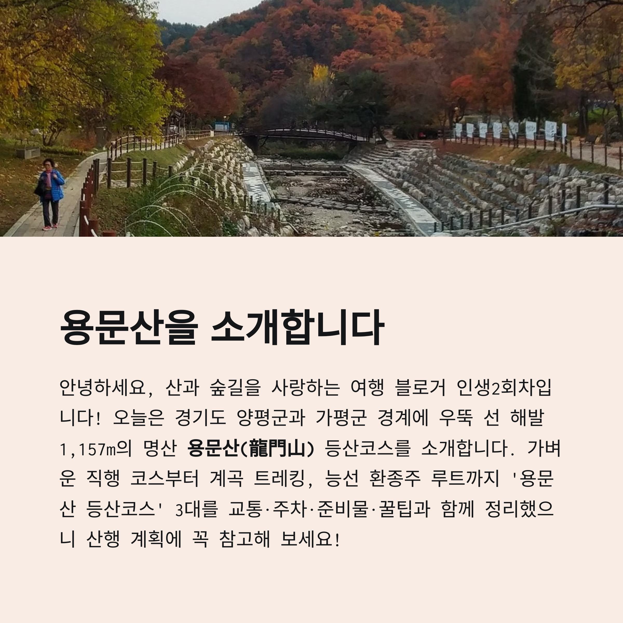 가벼운 직행 코스부터 계곡 트레킹, 능선 환종주 루트까지 ‘용문산 등산코스’ 3대를 교통·주차·준비물·꿀팁과 함께 정리했으니