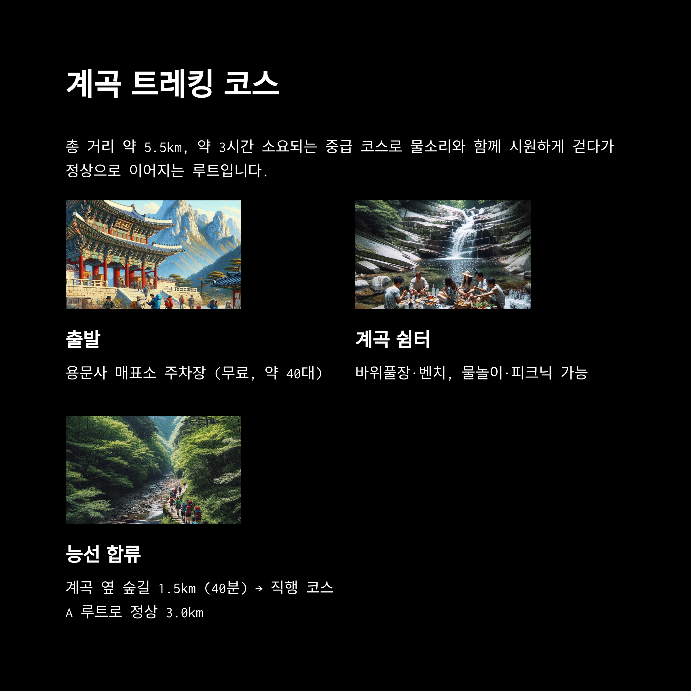 ■ 2. 계곡 트레킹 코스 (중급·완만 5.5km)