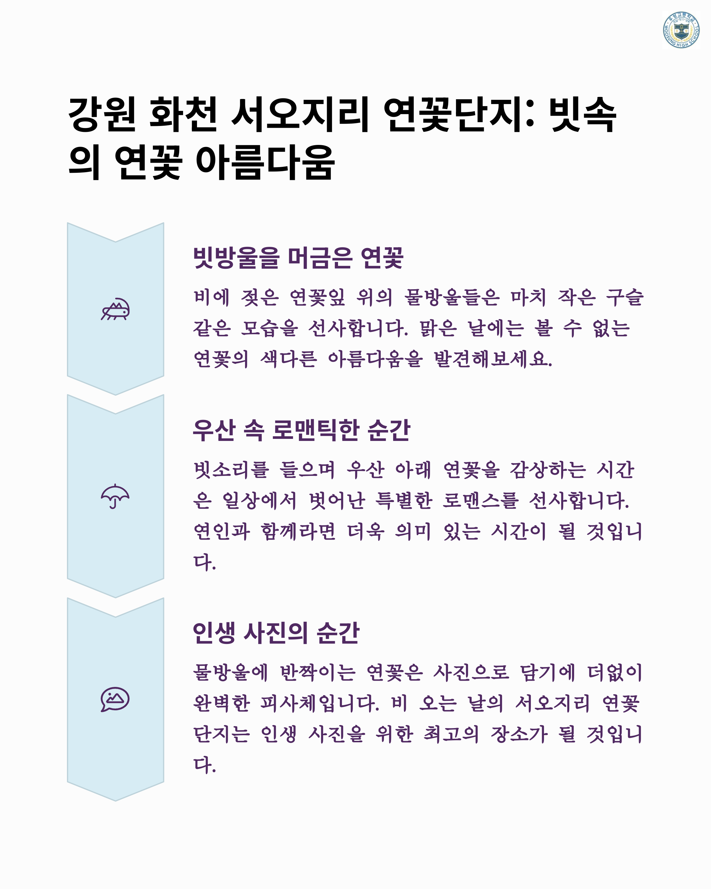 - 💡 여행 팁: 비 오는 날에는 연꽃의 색이 더욱 선명하게 보입니다. 우산과 방수 카메라를 준비하여 아름다운 순간을 담아보세요.