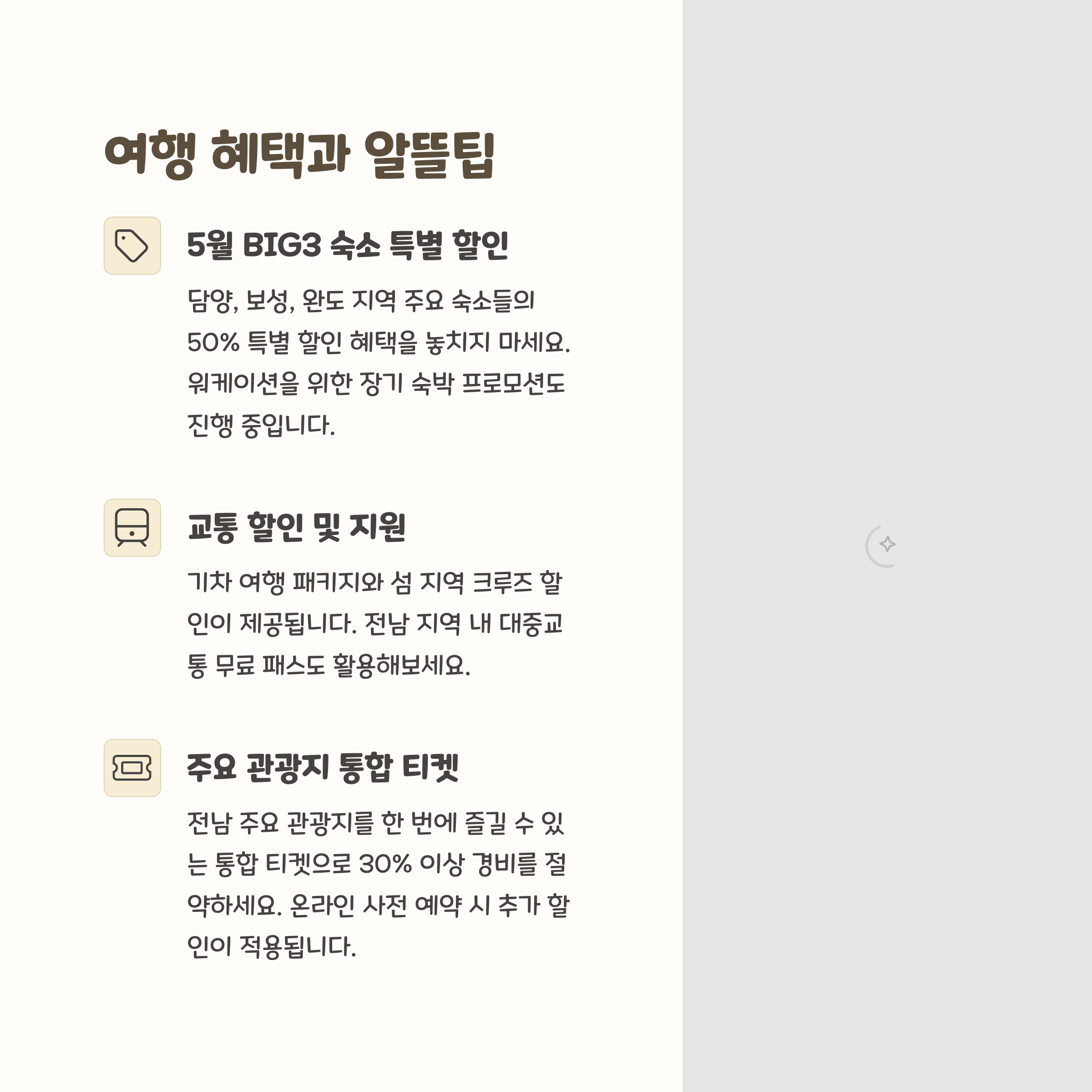 - 📷 SNS 포토스팟 찾기: ‘#전남5월여행’ 태그 참고