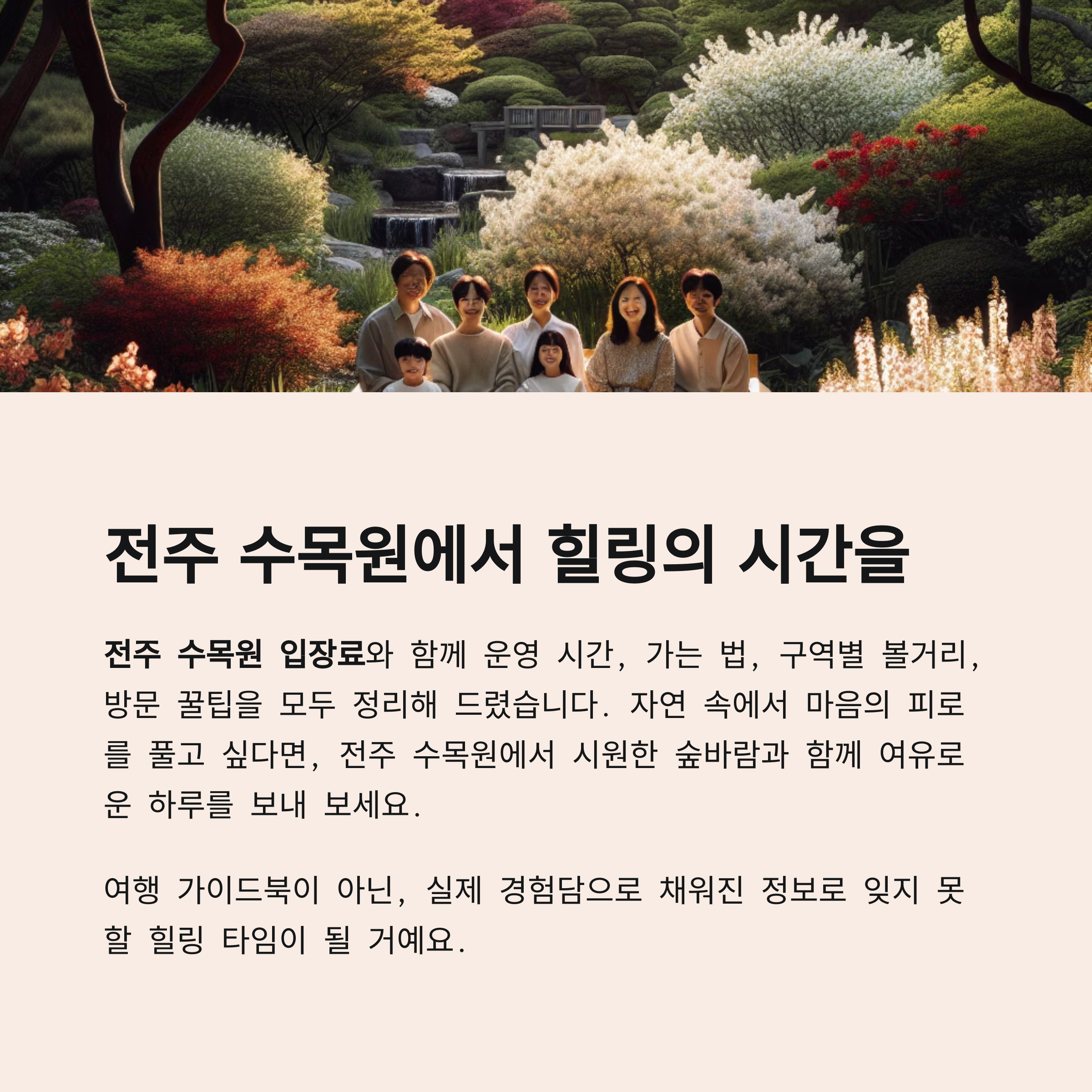 오늘은 많은 분들이 궁금해하시는 전주 수목원 입장료부터 운영 시간, 교통·주차 정보와 더불어 현장 꿀팁까지 한 번에 소개해 드릴게요.