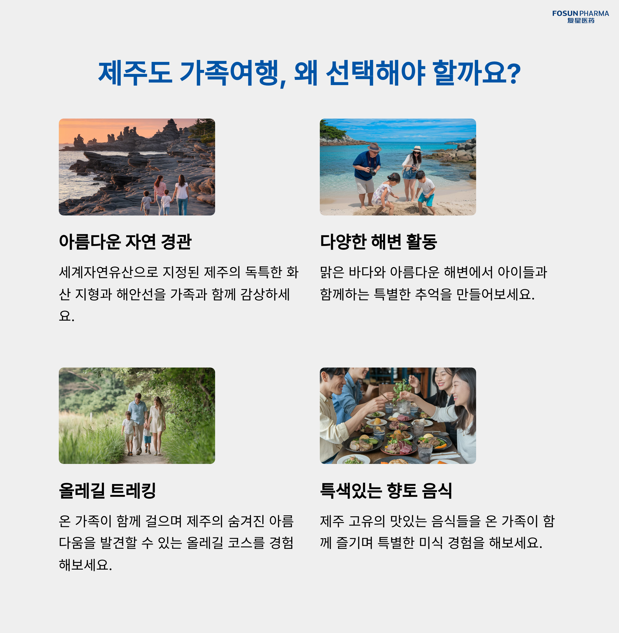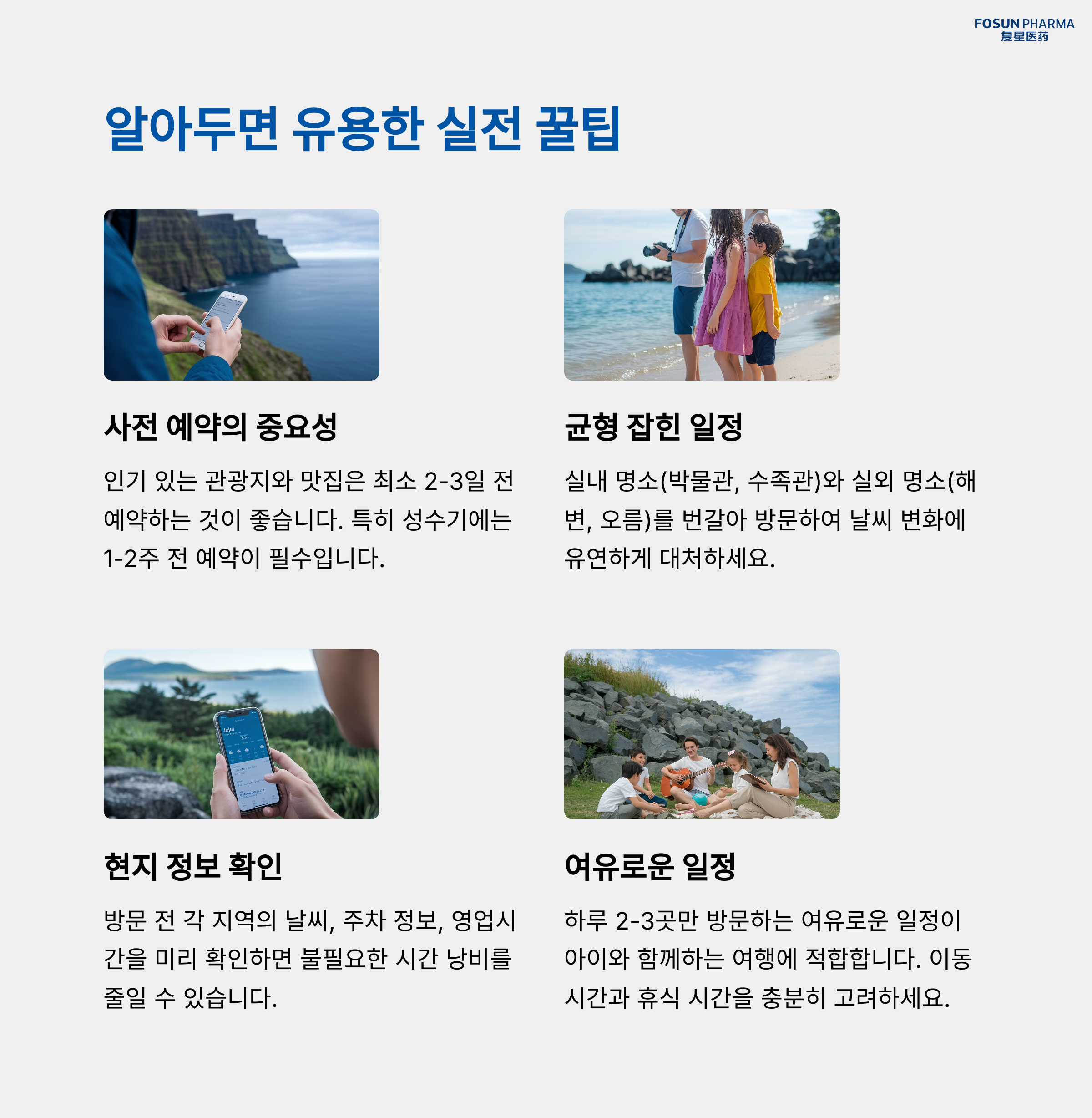 제주도는 사계절 내내 여행이 가능한 지역이지만, 가족 여행이라면 **봄(46월) 또는 가을(910월)**이 최적입니다.