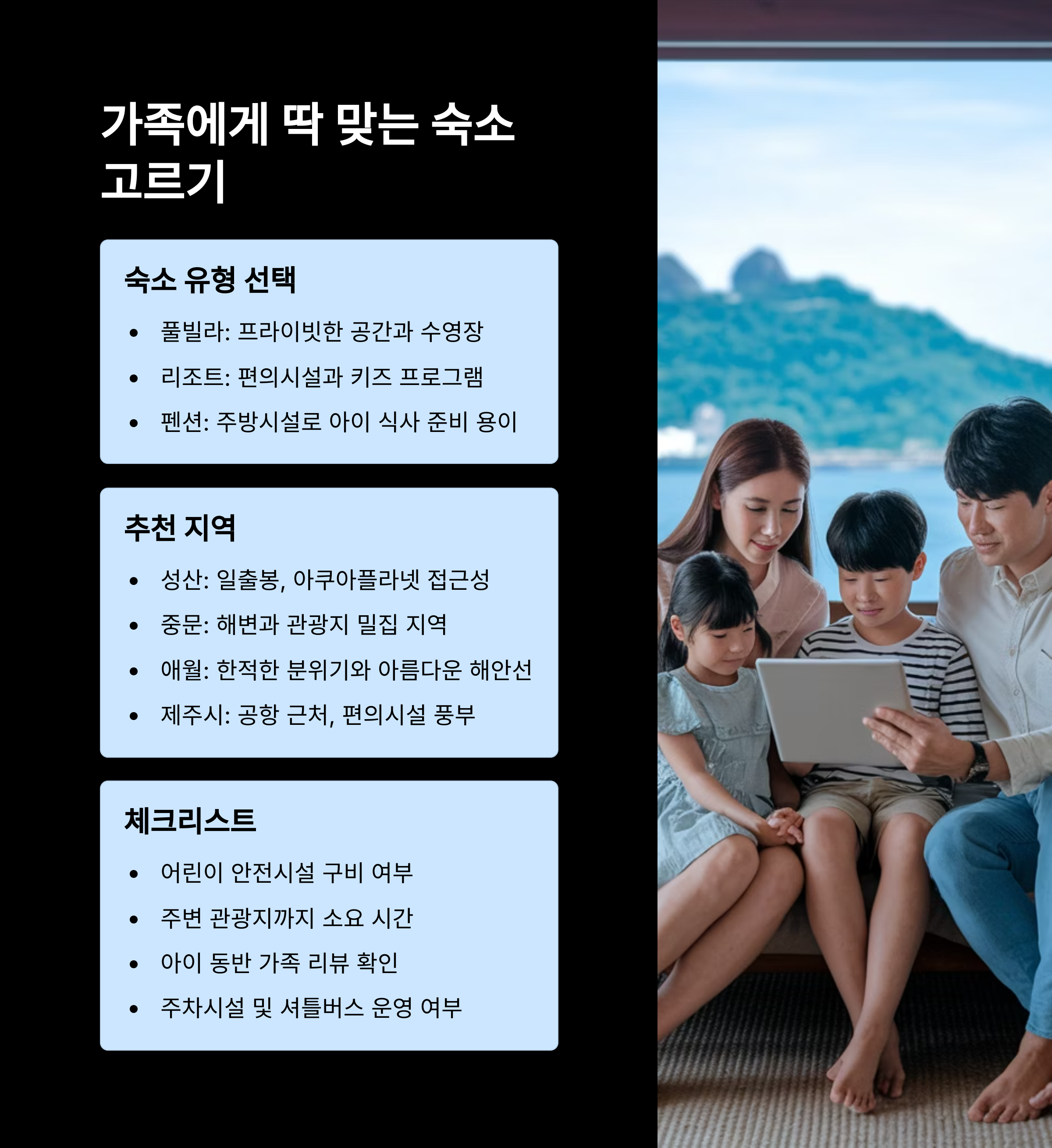 가족 여행 숙소는 '위치, 아이 편의시설, 조식 제공 여부'가 핵심입니다.