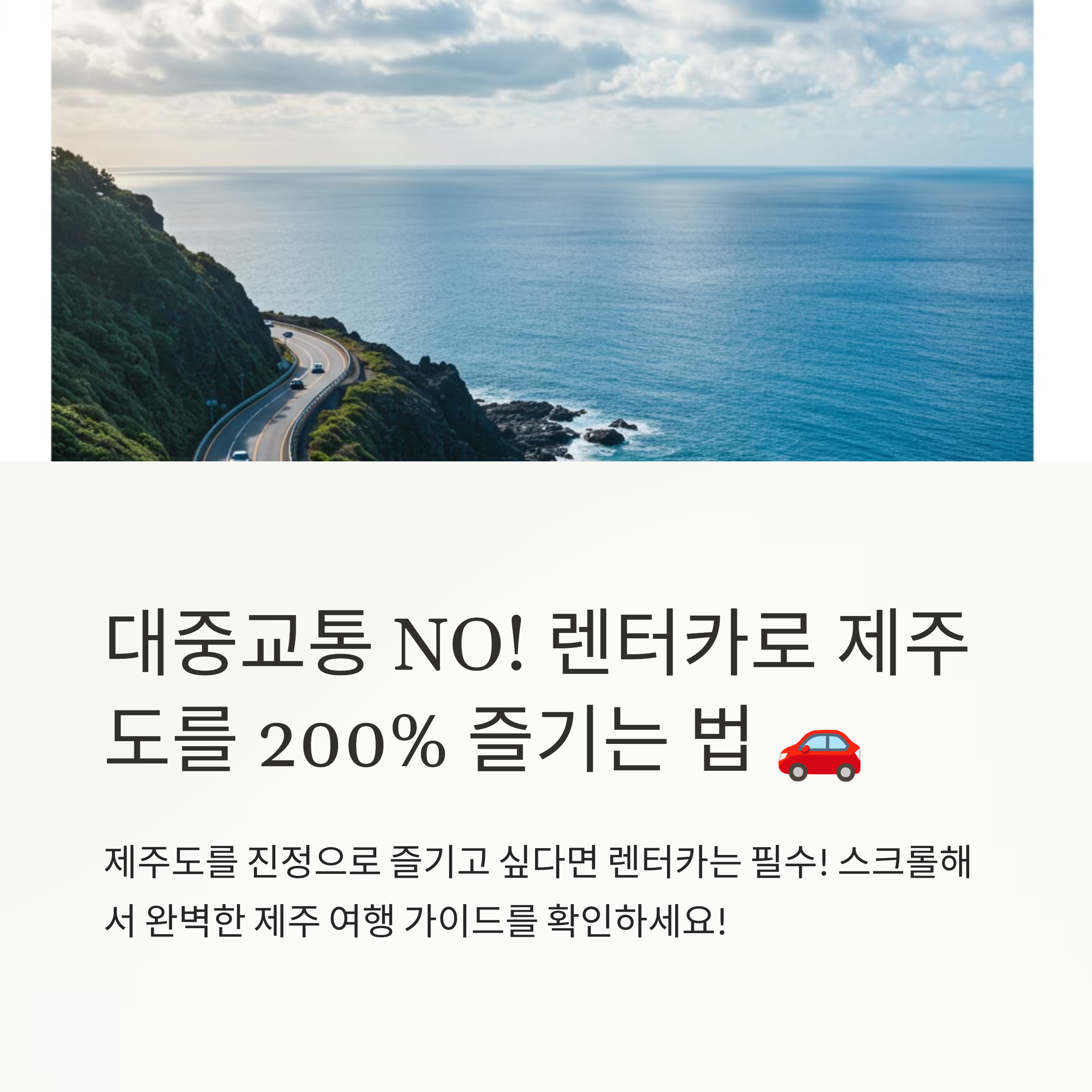 오늘은 렌터카 예약부터 여행 루트까지, 제주도를 200% 즐기는 방법을 알려드릴게요! 🚀