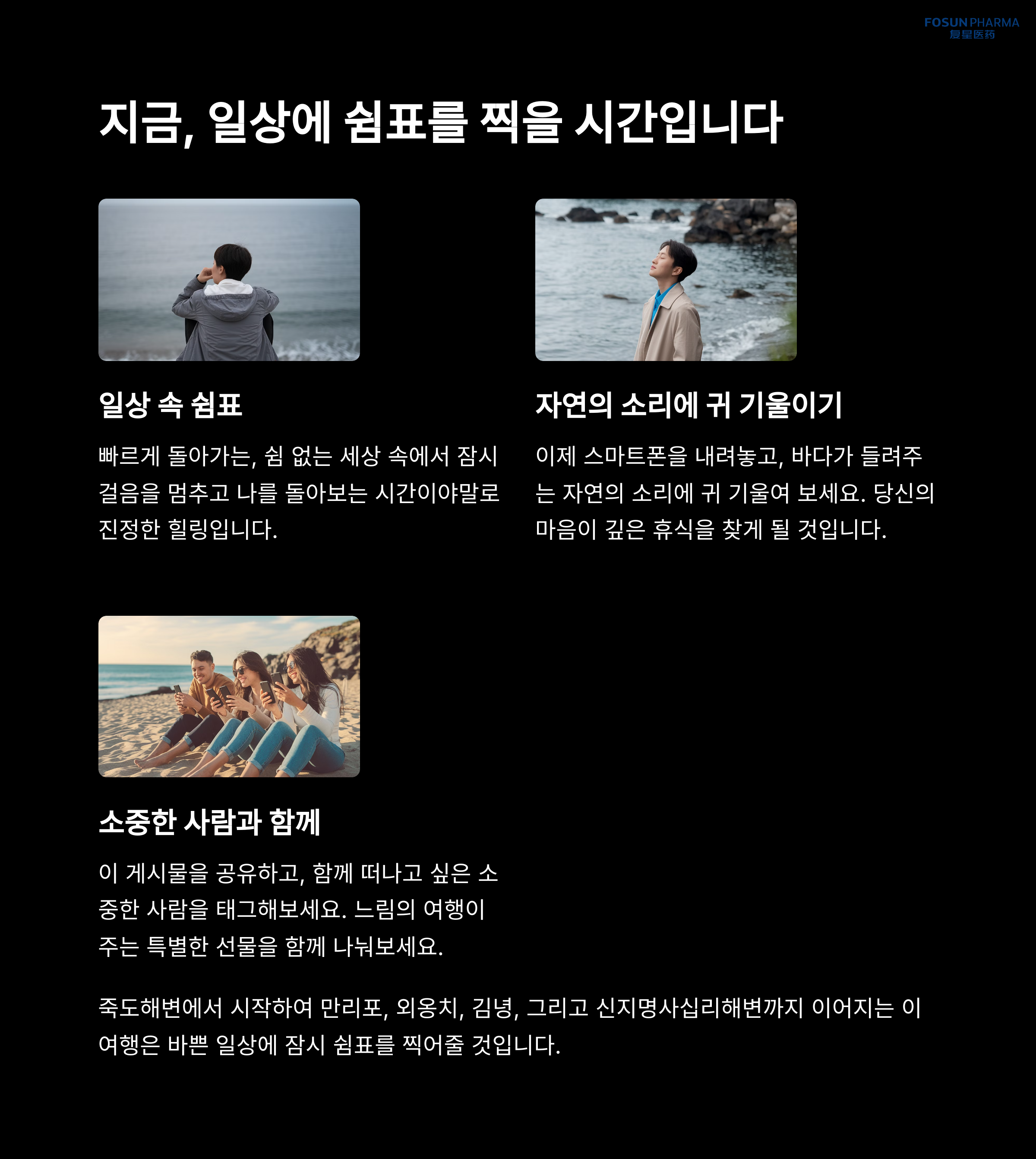 "빠르게 가는 것도 좋지만, 멈춰보면 더 많은 것이 보입니다."