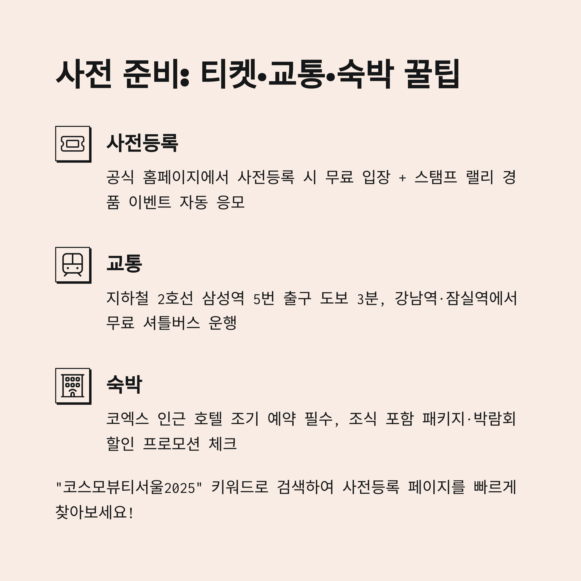 미리 일정, 교통·숙박, 주요 부스 정보와 꿀팁을 챙겨 두시면, 현장에서 전문가처럼 즐길 수 있습니다.