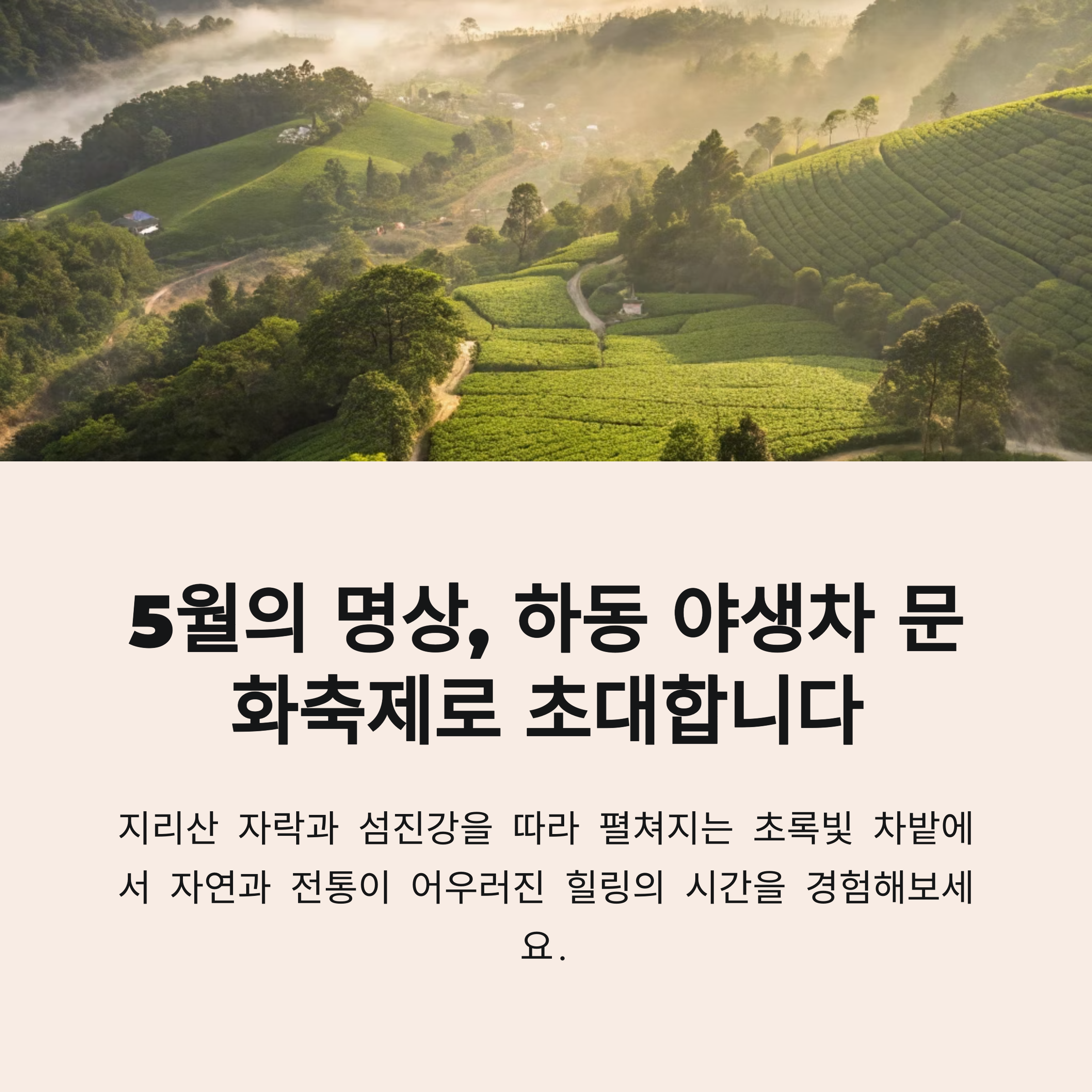 지리산 자락과 섬진강을 따라 이어지는 초록빛 차밭으로 물듭니다