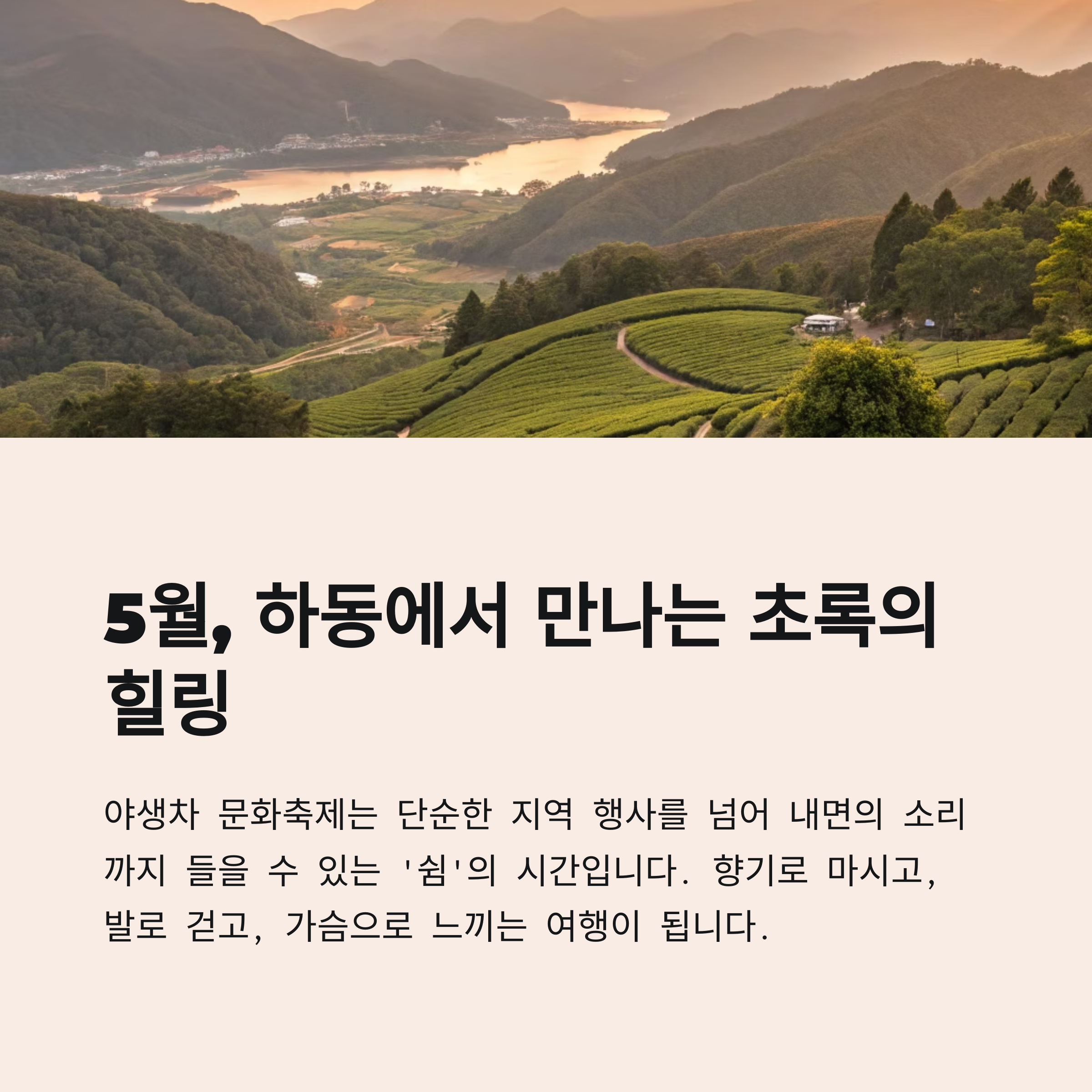 | 차밭 명상 프로그램 | 지리산 차밭 위 데크에서 진행 | 해 질 무렵 시간대 추천 |