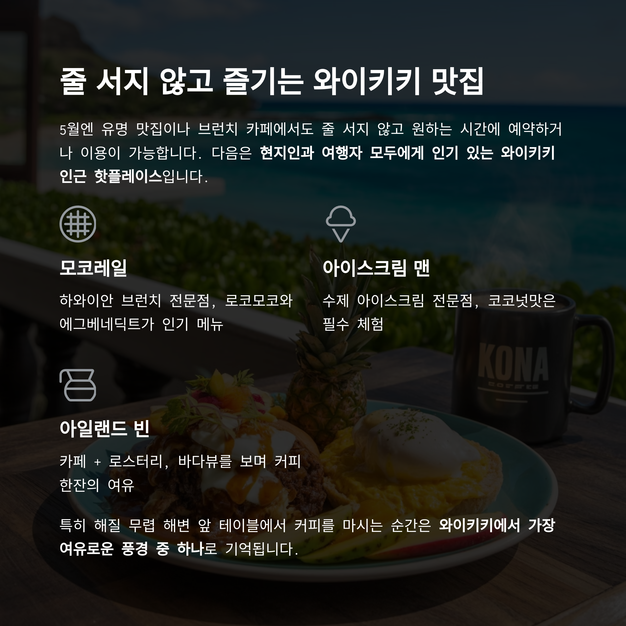와이키키 인근 맛집과 카페 추천 – 북적임 없는 시기만의 여유
