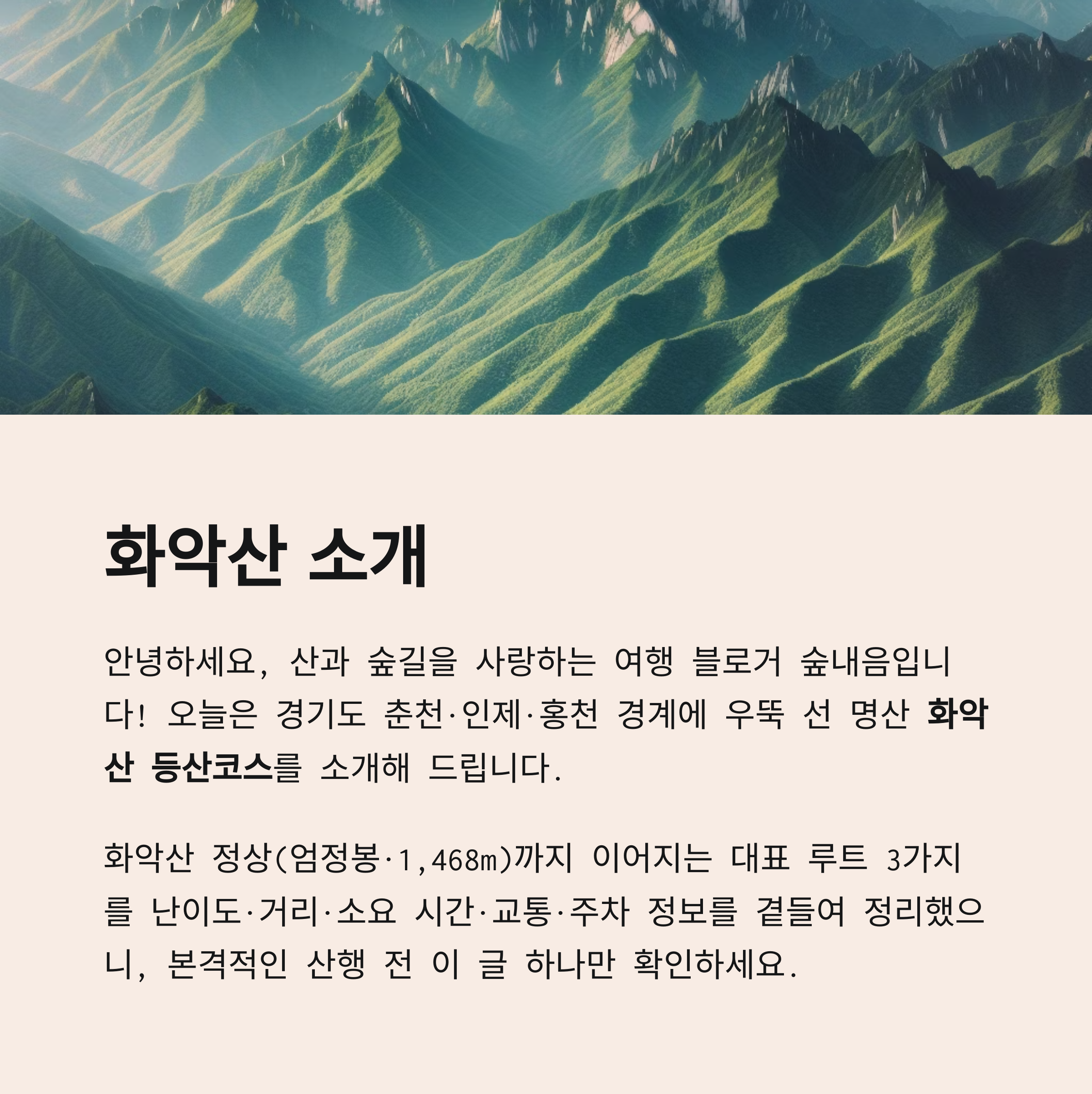 화악산 정상(엄정봉·1,468m)까지 이어지는 대표 루트 3가지를 난이도·거리·소요 시간·교통·주차 정보를 곁들여 정리했으니, 본격적인 산행 전 이 글 하나만 확인하세요