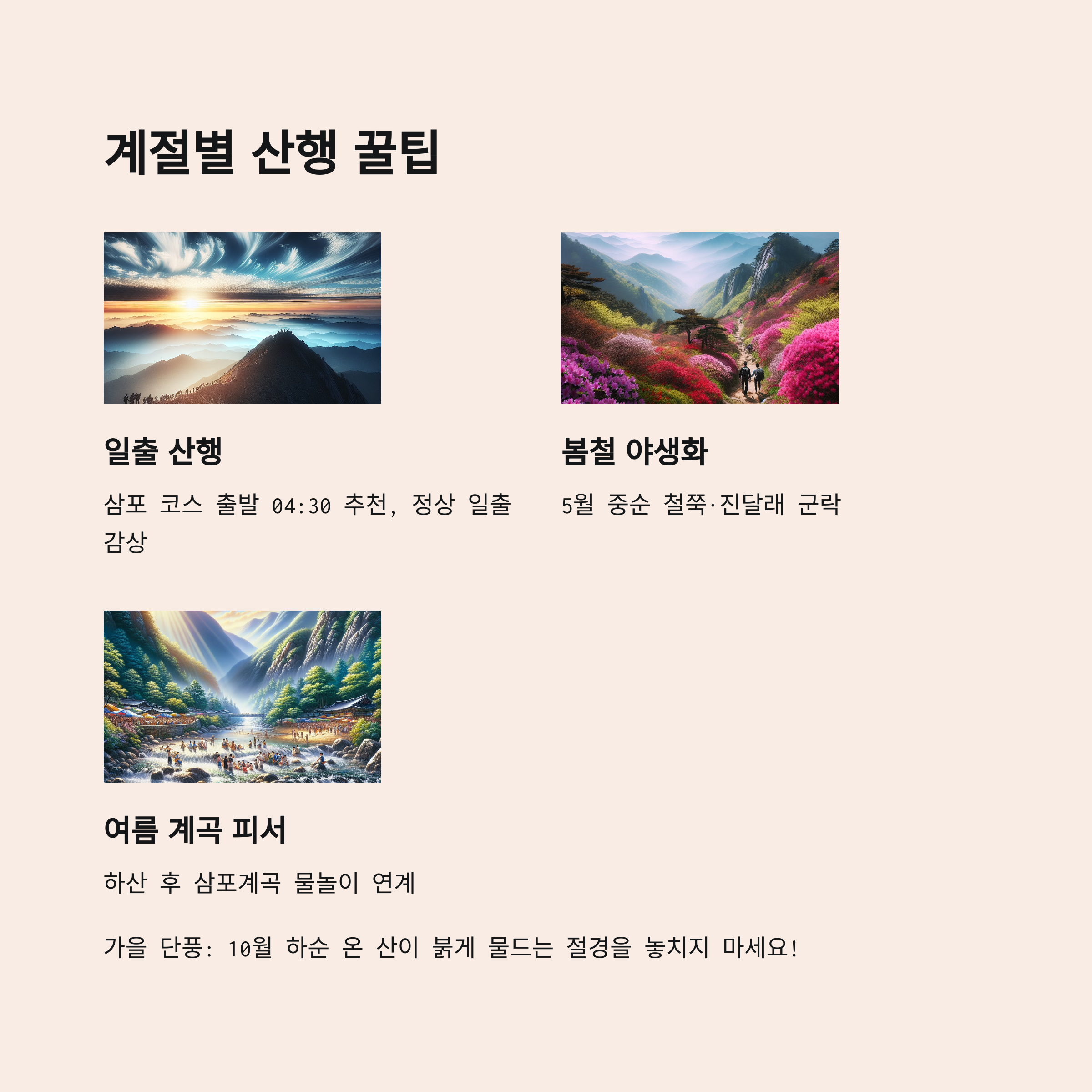 - 일출 산행: 삼포 코스 출발 04:30 추천, 정상 일출 감상
