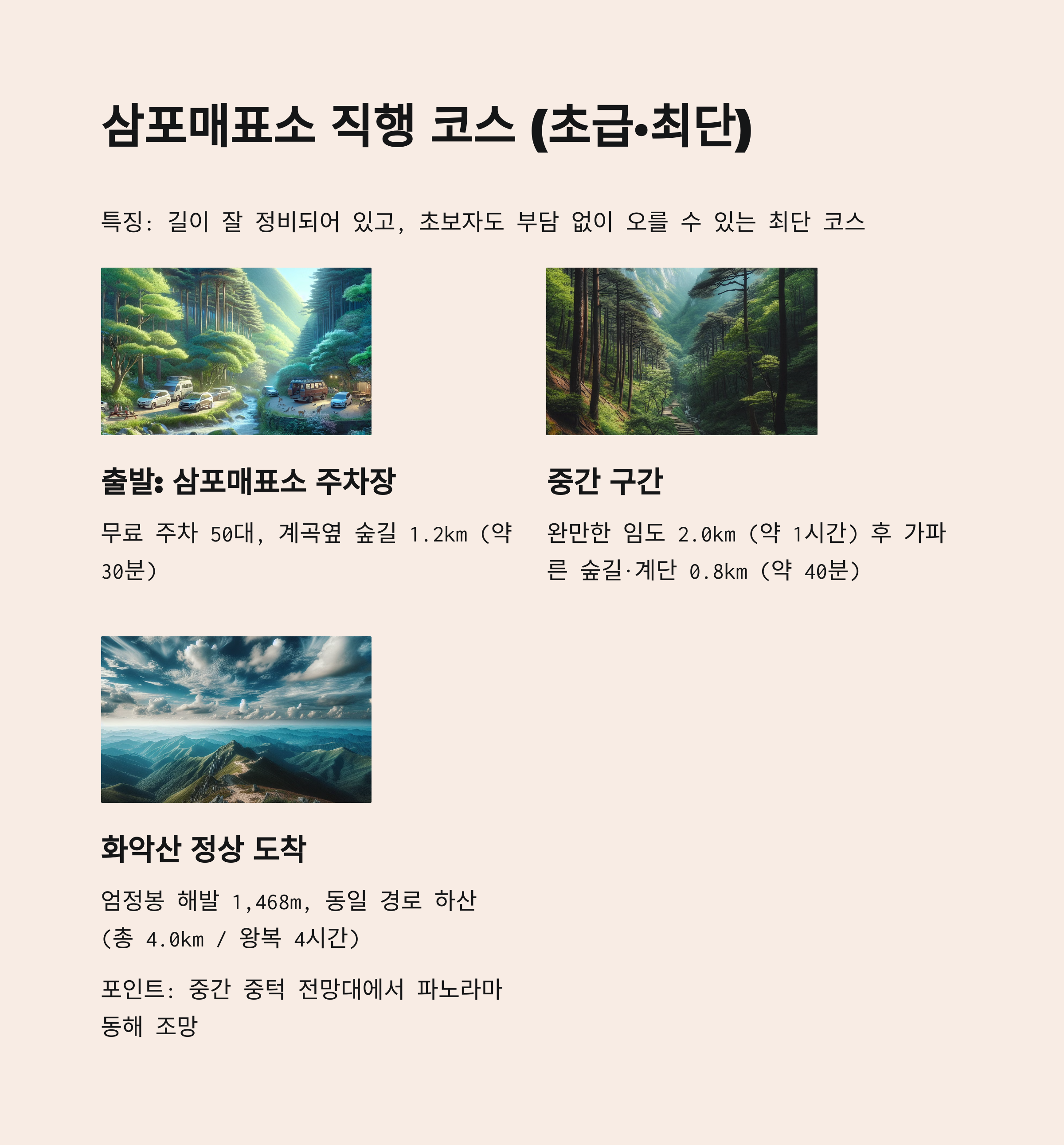 ■ 1. 화악산 등산코스 A – 삼포매표소 직행 코스 (초급·최단)